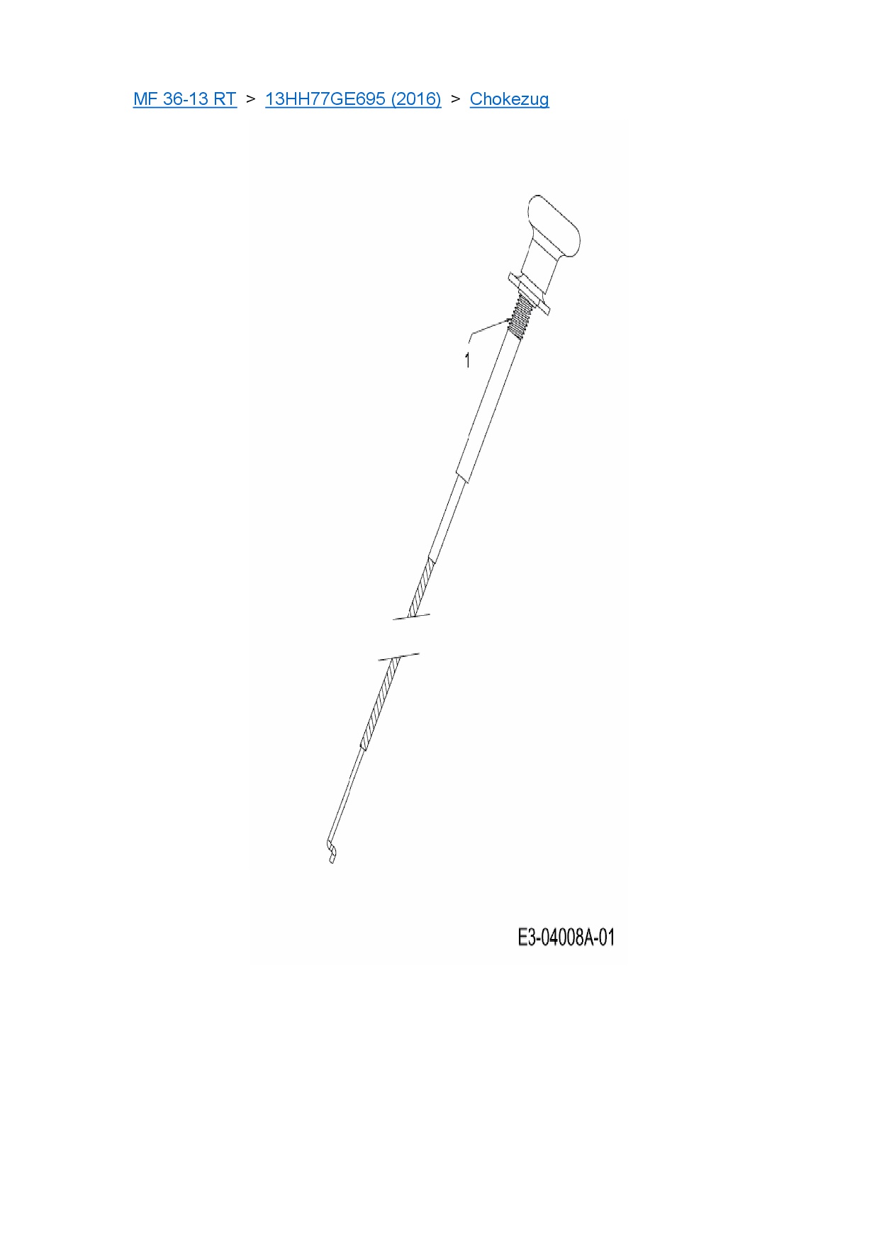 Ersatzteile für Rasentraktor Massey Ferguson MF 36-13 RT aus der Zeichnung Chokezug: