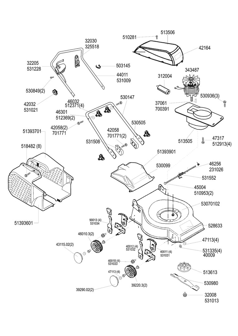 Zeichnungen von AL-KO Elektrorasenmäher Classic 40 E mit der Geräte-Artikelnr. 120429: