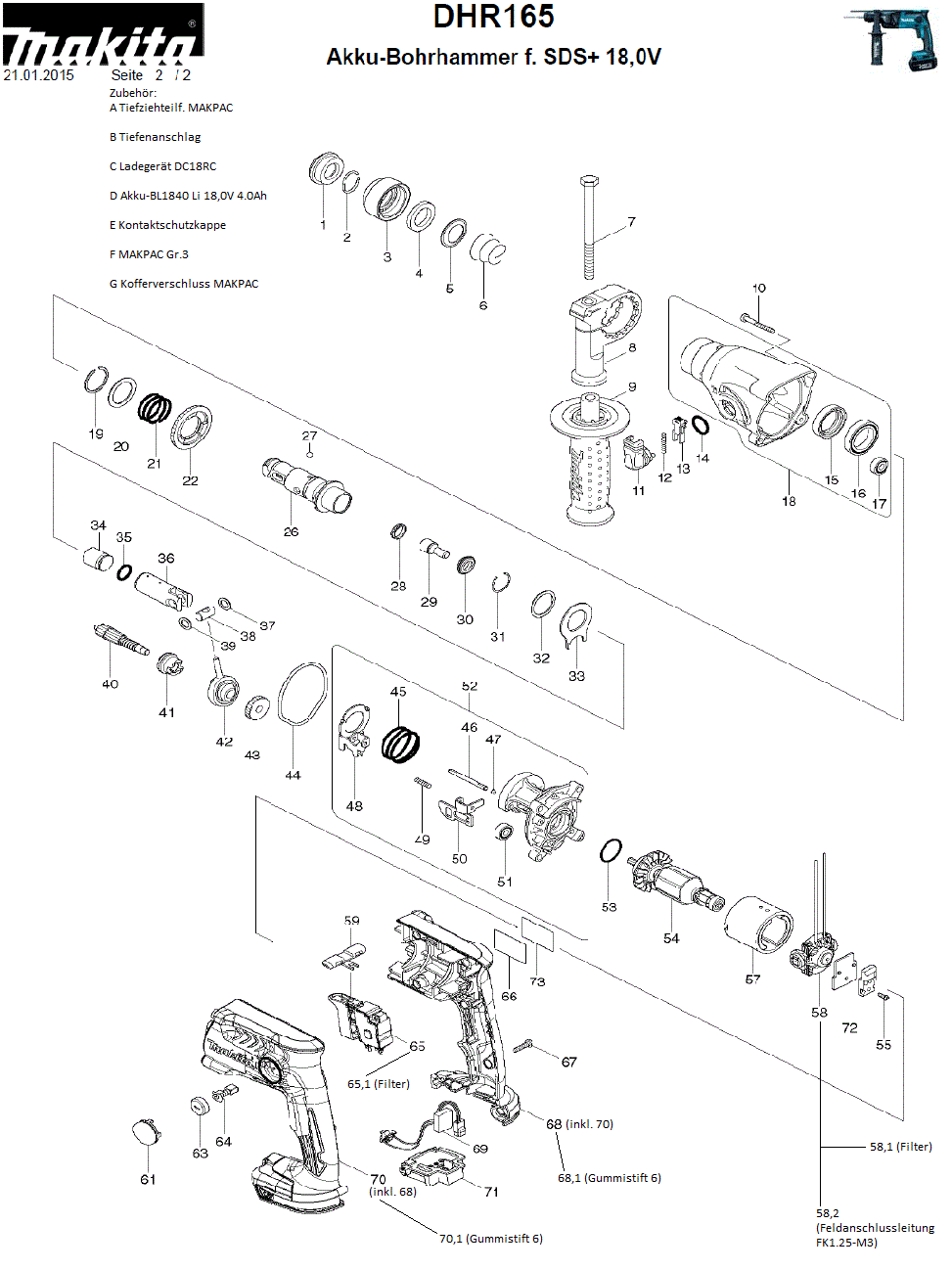 Folgende Ersatzteile für Makita DHR165 - Bohrhammer können Sie hier bestellen: