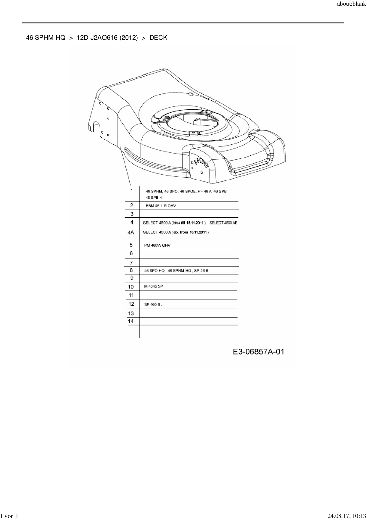 Ersatzteile für Motormäher mit Antrieb MTD 46 SPHM-HQ aus der Zeichnung Deck: