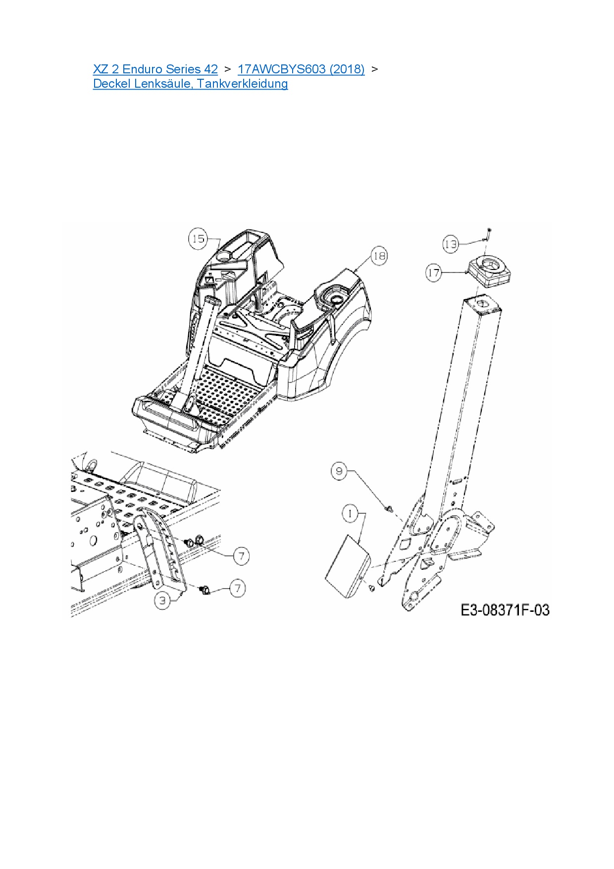 Ersatzteile für Zero Turn Cub Cadet XZ 2 Enduro Series 42 aus der Zeichnung Deckel Lenksäule, Tankverkleidung: