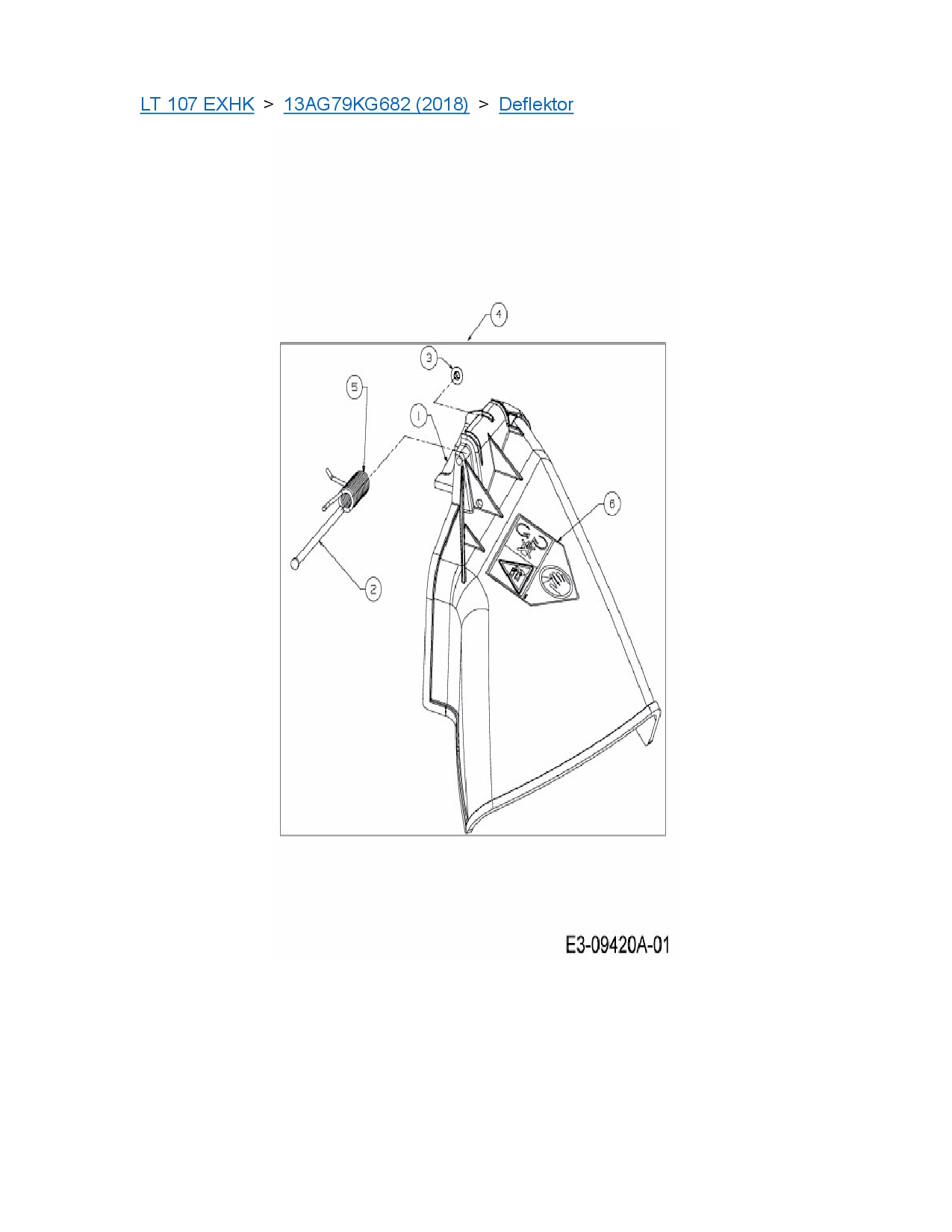 Ersatzteile für Rasentraktor MTD LT 107 EXHK aus der Zeichnung Deflektor (1):