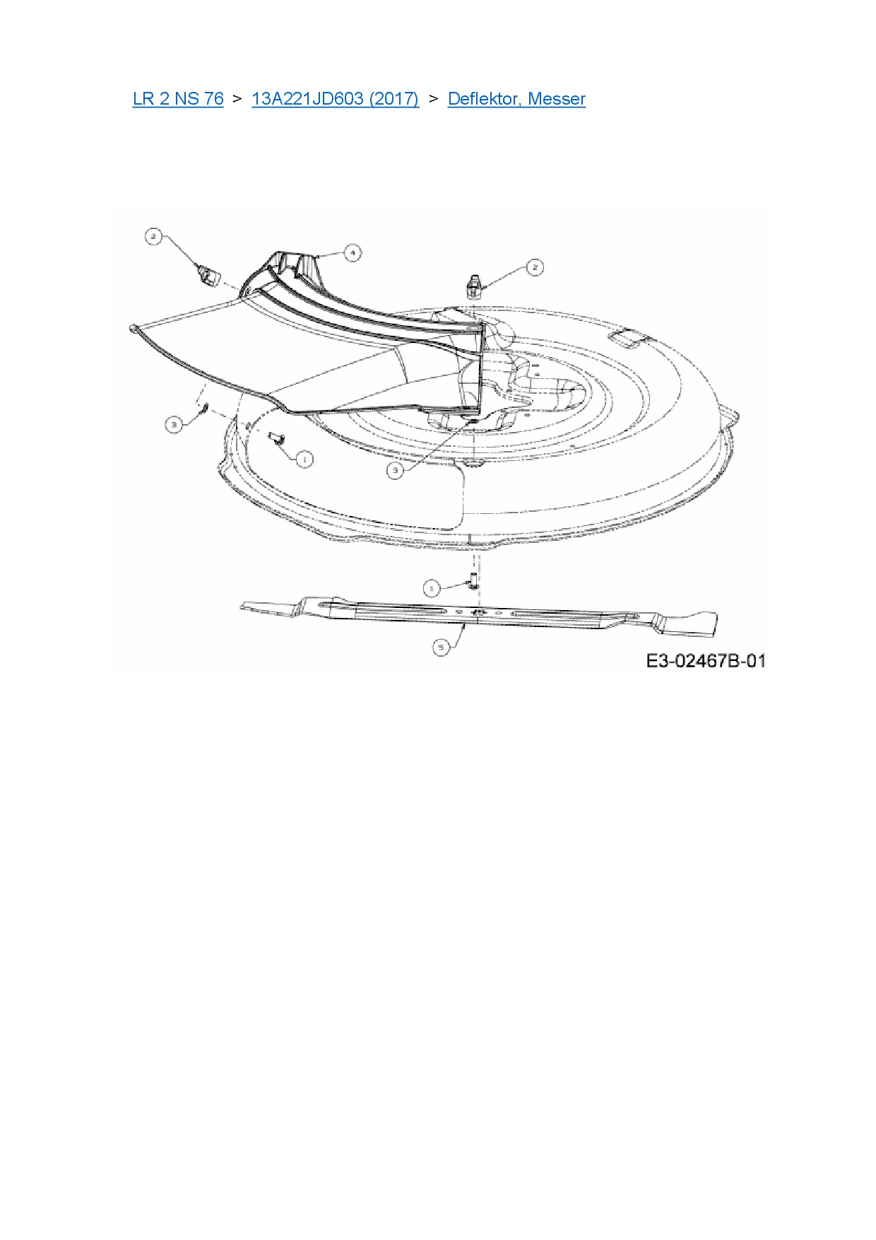 Ersatzteile für Rasentraktor Cub Cadet LR 2 NS 76 aus der Zeichnung Deflektor, Messer: