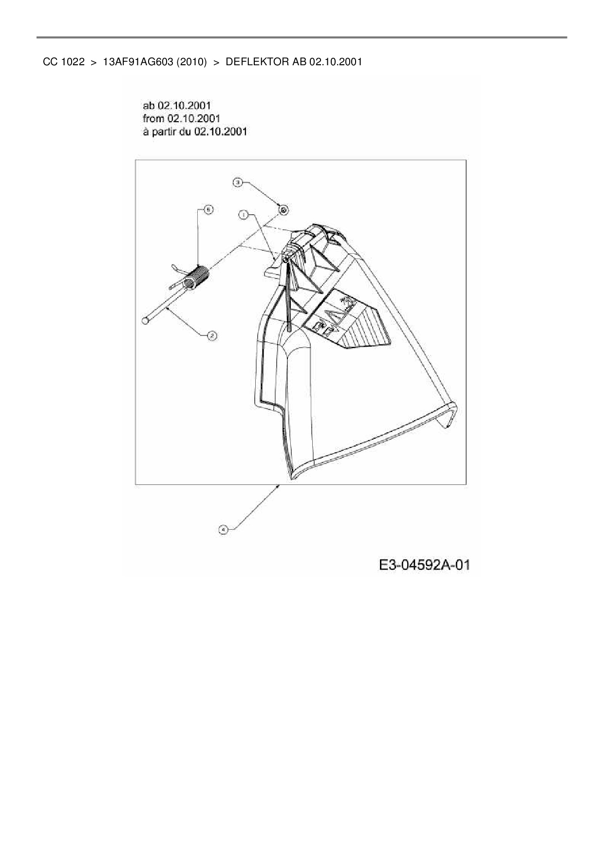 Ersatzteile für Rasentraktor Cub Cadet CC 1022 aus der Zeichnung Deflektor ab 02.10.2001: