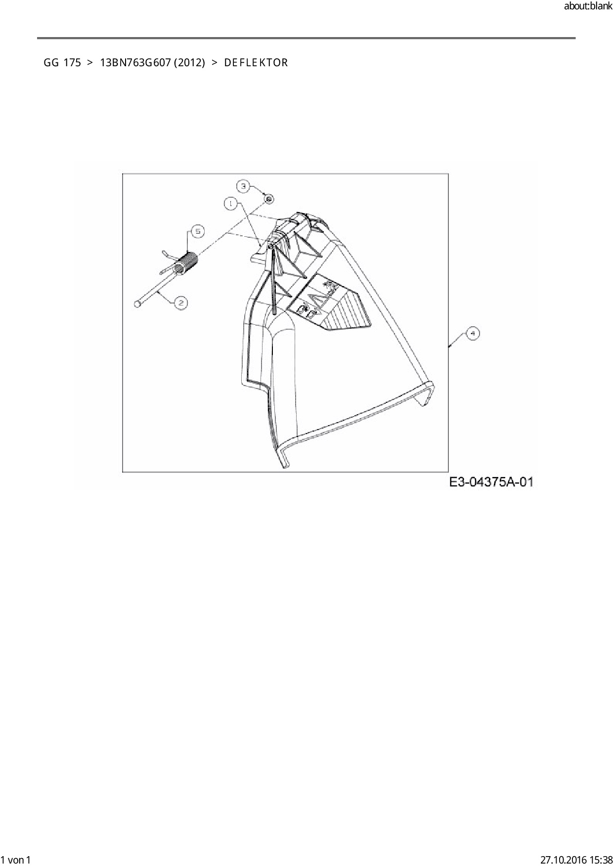 Ersatzteile für Rasentraktor Blisar GG 175 aus der Zeichnung Deflektor: