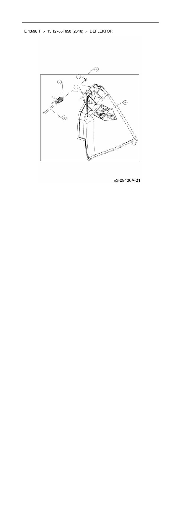 Ersatzteile für Rasentraktor Wolf-Garten E 13/96 T aus der Zeichnung Deflektor:
