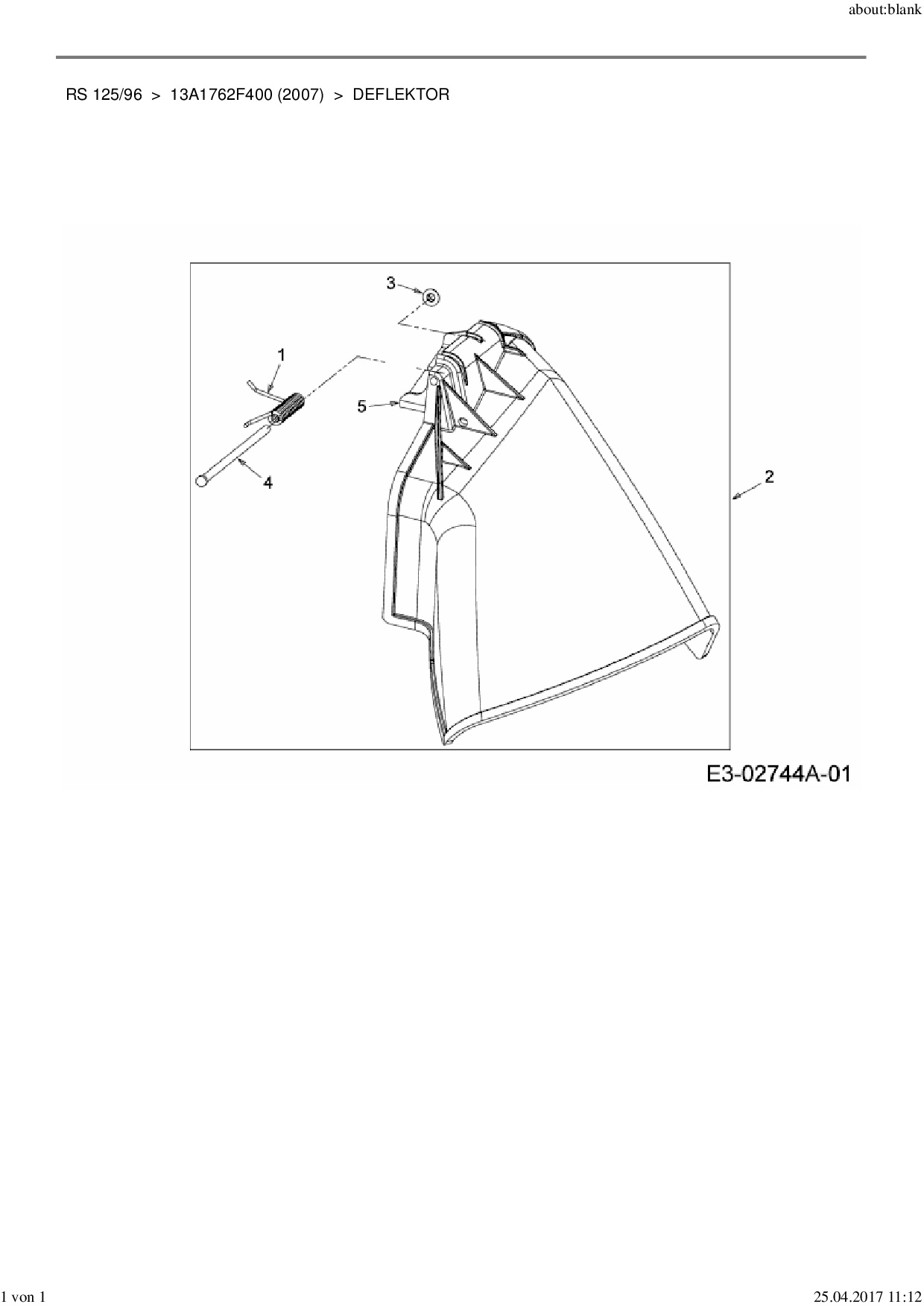 Ersatzteile für Rasentraktor MTD RS 125/96 aus der Zeichnung Deflektor: