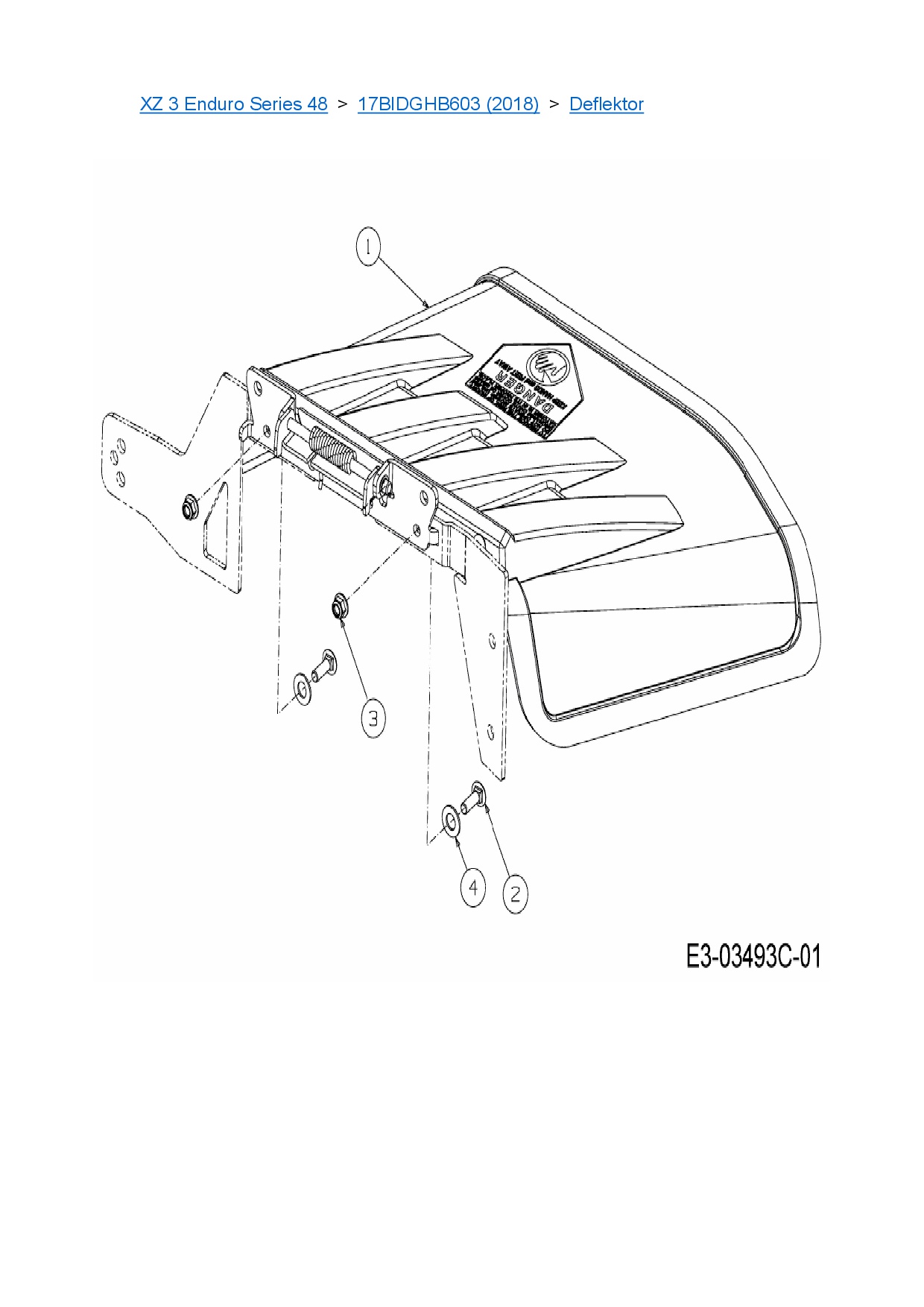 Ersatzteile für Zero Turn Cub Cadet XZ 3 Enduro Series 48 aus der Zeichnung Deflektor:
