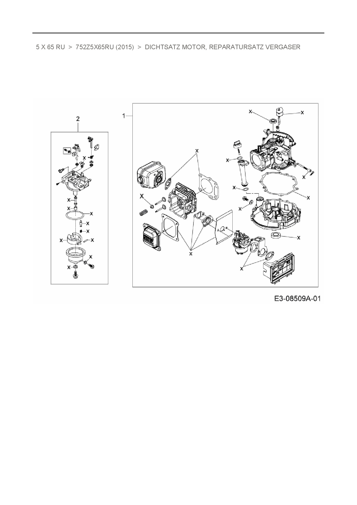 Ersatzteile für Vertikal MTD-Motoren 5 X 65 RU aus der Zeichnung Dichtsatz Motor, Reparatursatz Vergaser: