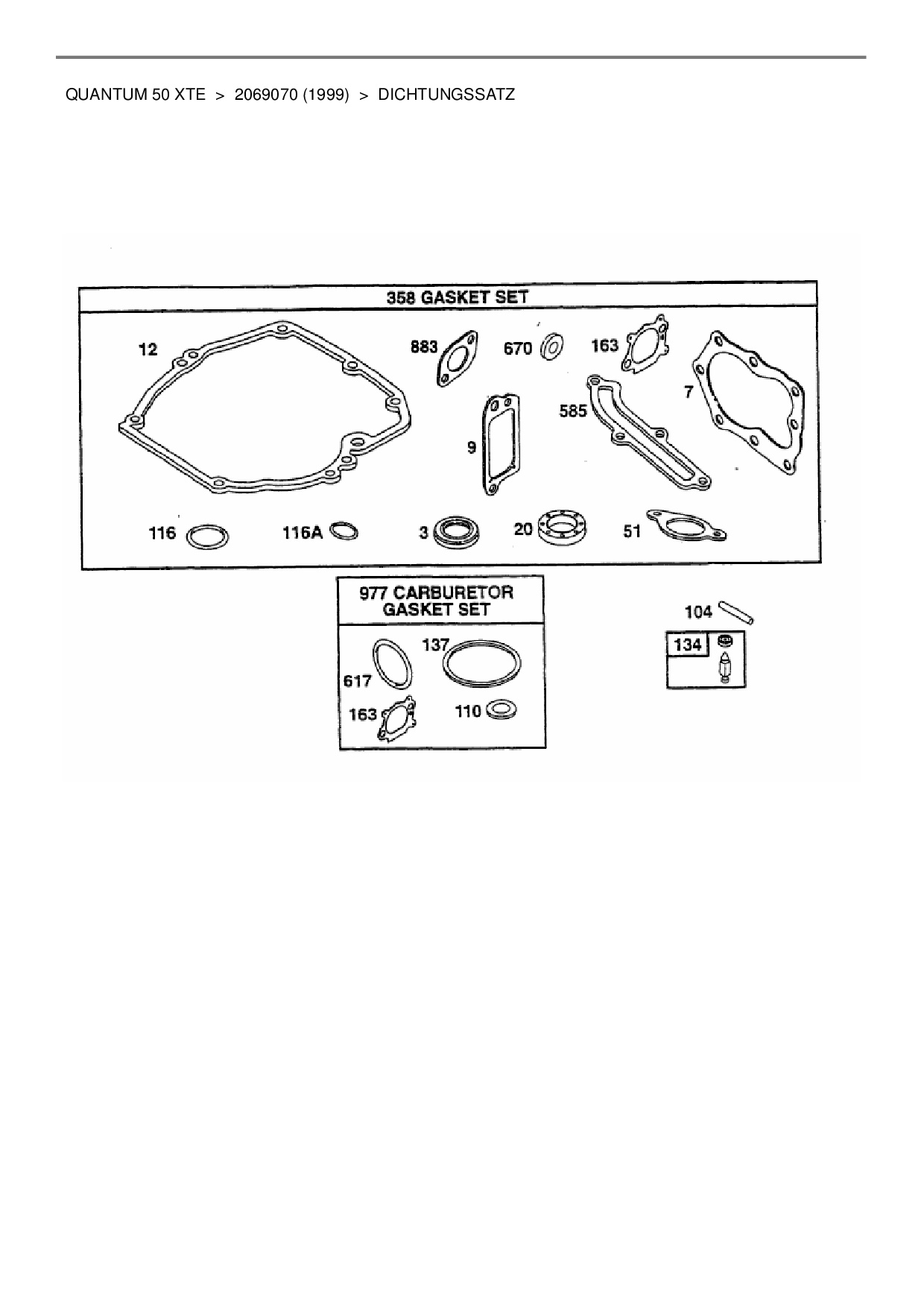 Ersatzteile für Benzinmotor Briggs&Stratton Wolf-Garten Quantum 50 XTE aus der Zeichnung Dichtungssatz:
