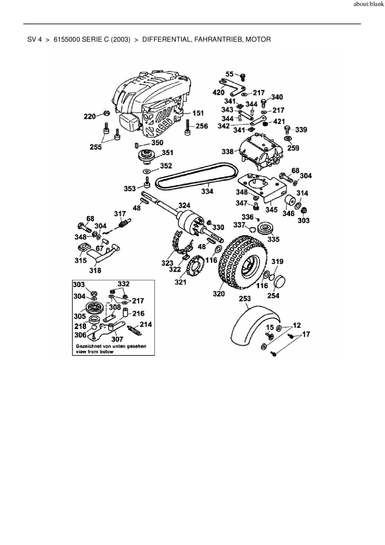 Ersatzteile für Scooter Wolf-Garten SV 4 aus der Zeichnung Differential, Fahrantrieb, Motor: