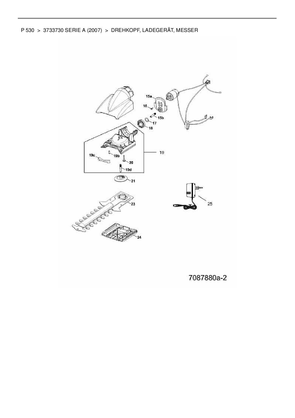 Download Ersatzteil-Zeichnung Wolf-Garten P 530 Zeichnung Drehkopf, Ladegerät, Messer (PDF-Format)