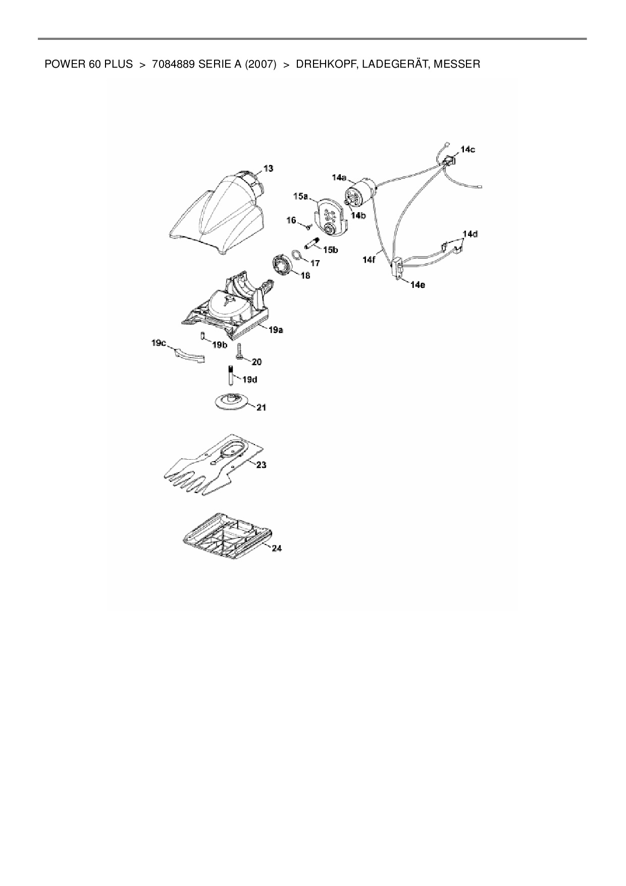 Ersatzteile für Akkuschere Wolf-Garten Power 60 plus aus der Zeichnung Drehkopf, Ladegerät, Messer: