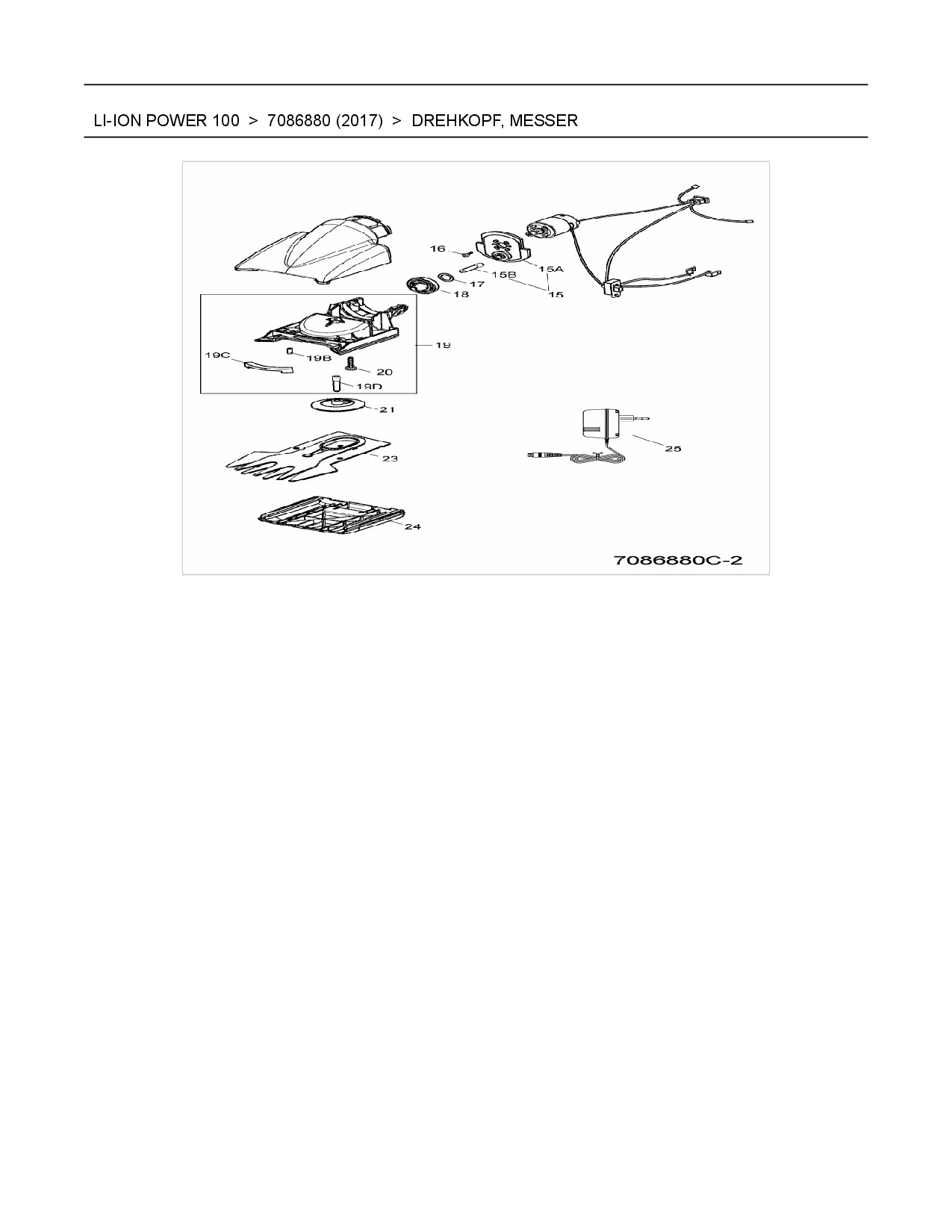 Ersatzteile für Akkuschere Wolf-Garten Li-Ion Power 100 aus der Zeichnung Drehkopf, Messer: