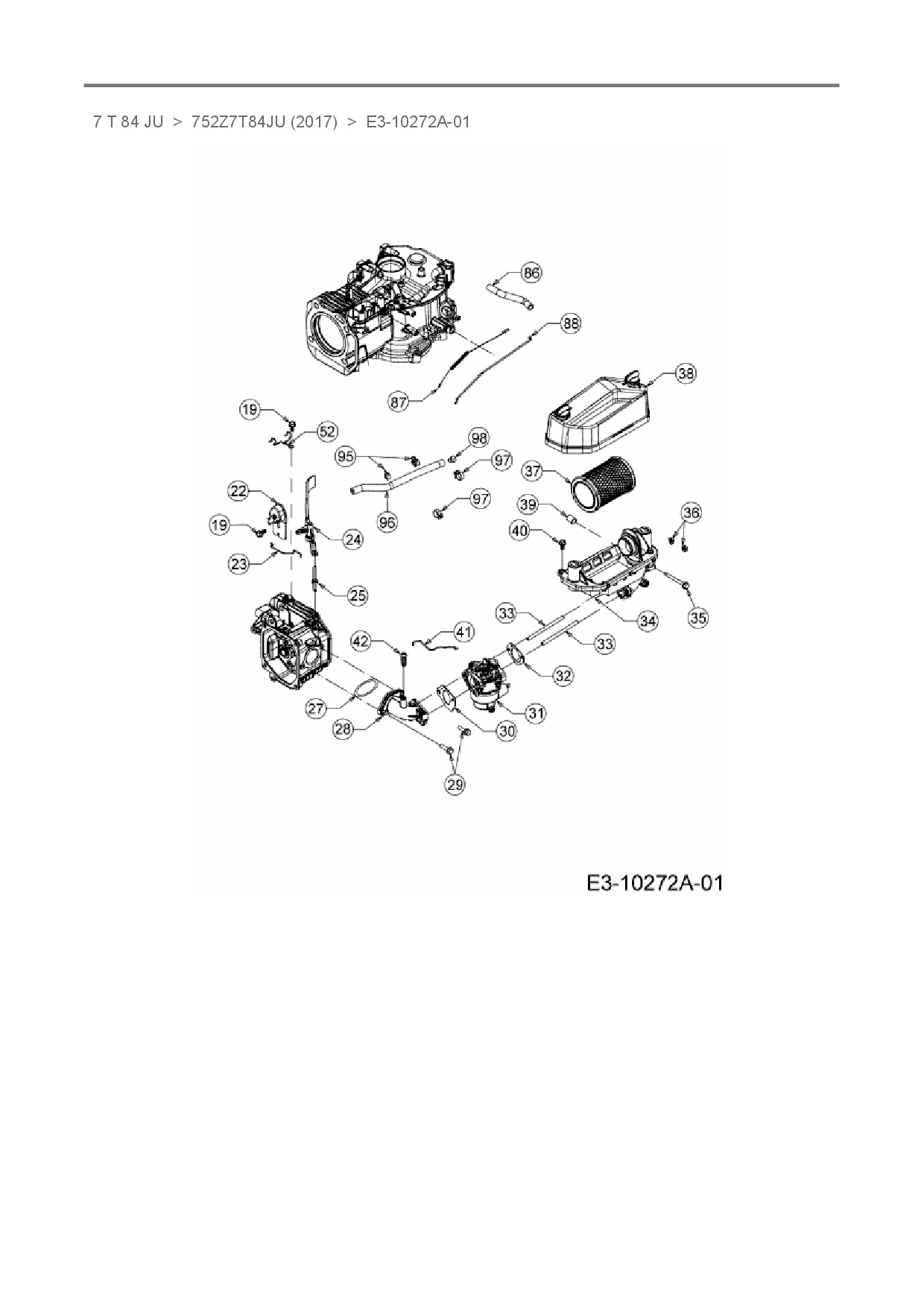 Ersatzteile für Vertikal MTD-Motoren 7 T 84 JU aus der Zeichnung E3-10272A-01:
