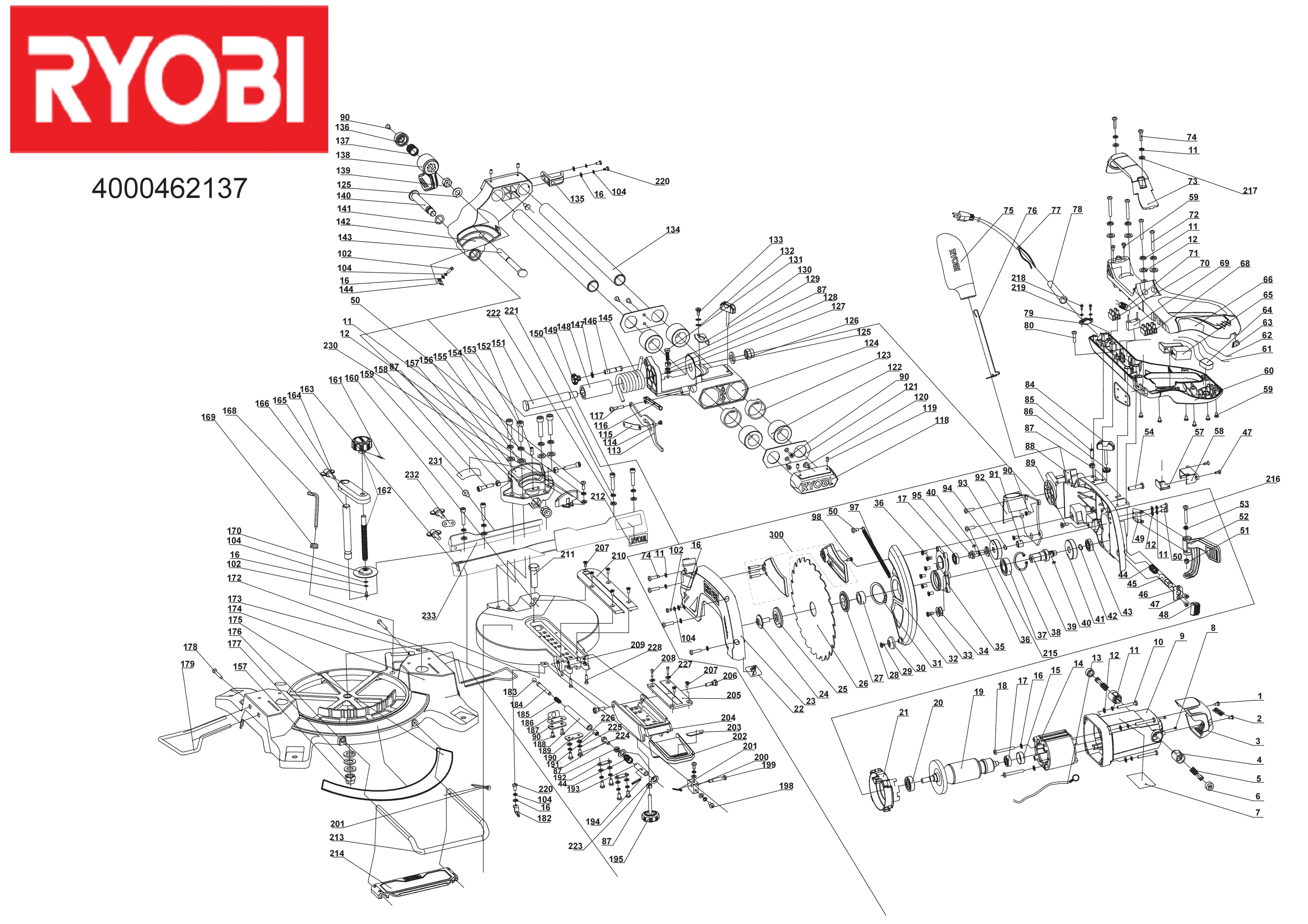 Ersatzteile für Kapp- und Gehrungssäge EMS216 (4000462137 5133002886) von Ryobi: