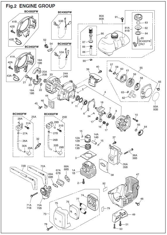 Zeichnung Zenoah Freischneider BC4302FW ENGINE GROUP: