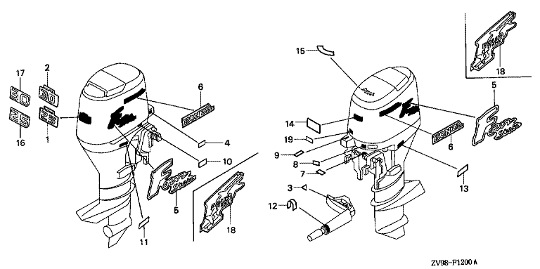 Ersatzteile für Honda Außenbordmotoren BF30A1 LRSA (LRSA) Baugruppe ETIKETTEN