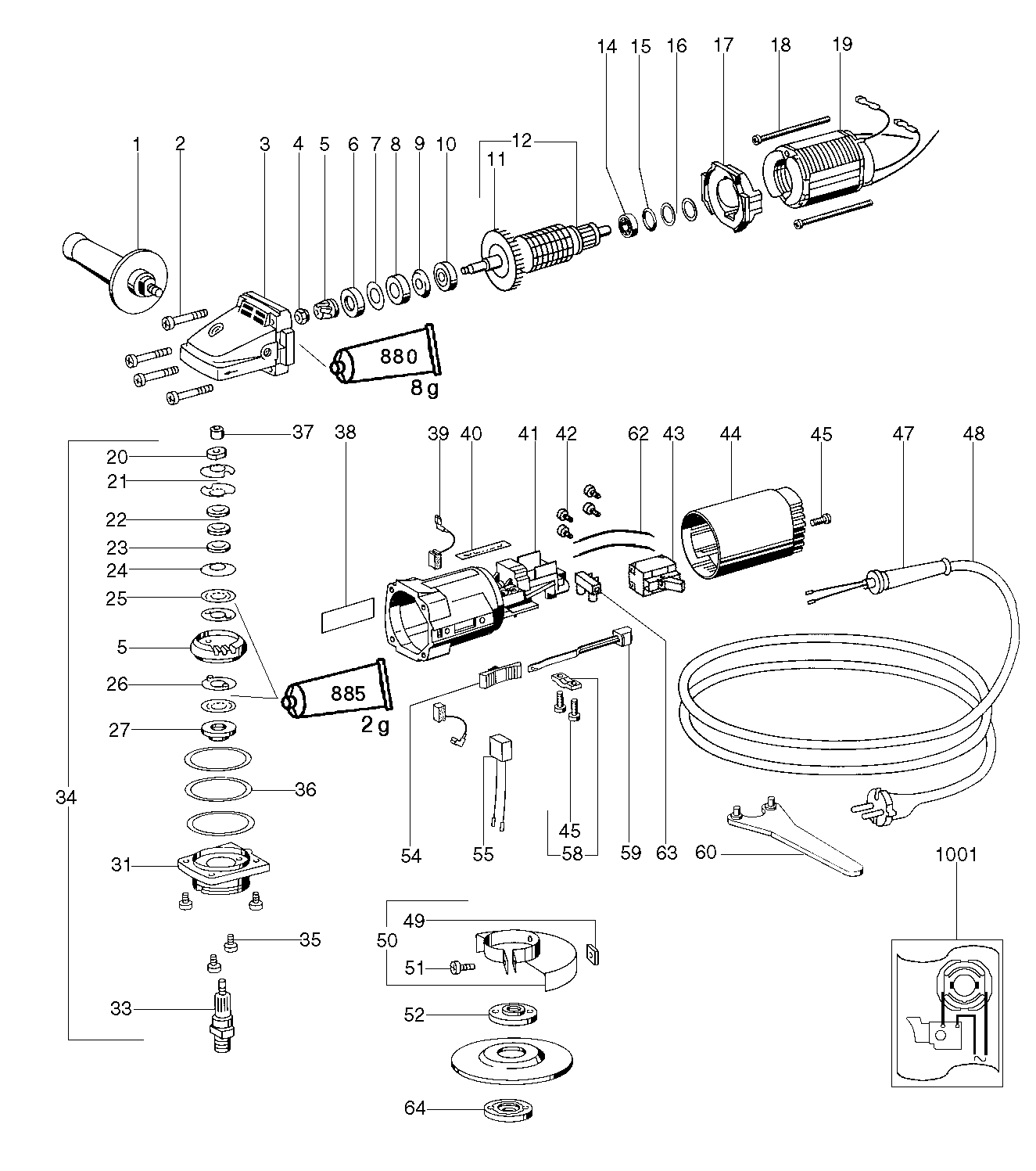 Zeichnung 1 Sollten Sie Fragen zu einem Ersatzteil von Metabo EW 7100 S Winkelschleifer 607100360 haben, können Sie uns gerne eine E-Mail (mit einem Foto vom Typenschild Ihres Gerätes) schreiben oder eine Ersatzteilanfrage stellen.