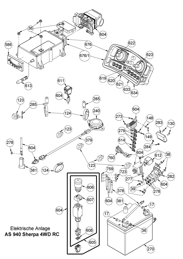 Hier finden Sie alle Ersatzteile von AS-Motor Ferngesteuerte Mäher AS 940 Sherpa 4WD RC B&S ab FNr. 027419060001 aus dem Zeichnungsblatt Elektrische Anlage: