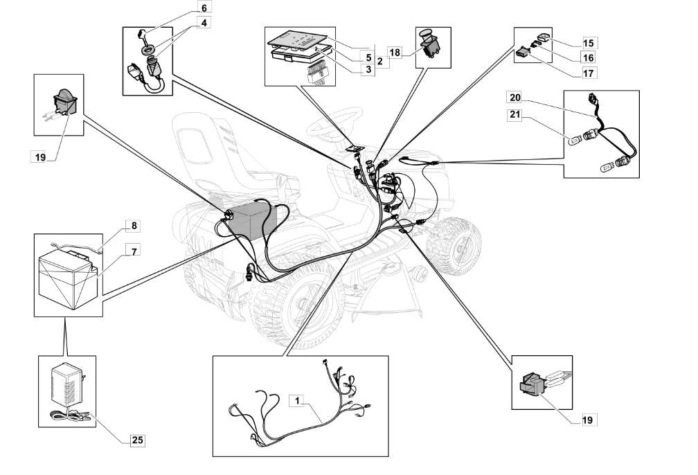 Hier finden Sie alle Ersatzteile für Oleo-Mac Rasentraktor OM 98L/14,5 K H Cat. 2015 aus der Zeichnung für Elektrische Anlage: