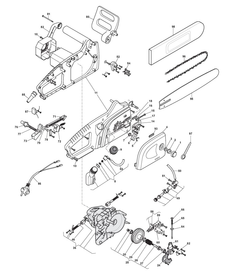 Hier finden Sie alle Ersatzteile von Castelgarden Elektro Kettensäge ES 2040 (292616013/11) ab 2018 aus der Zeichnung Elektrokettensäge (2):