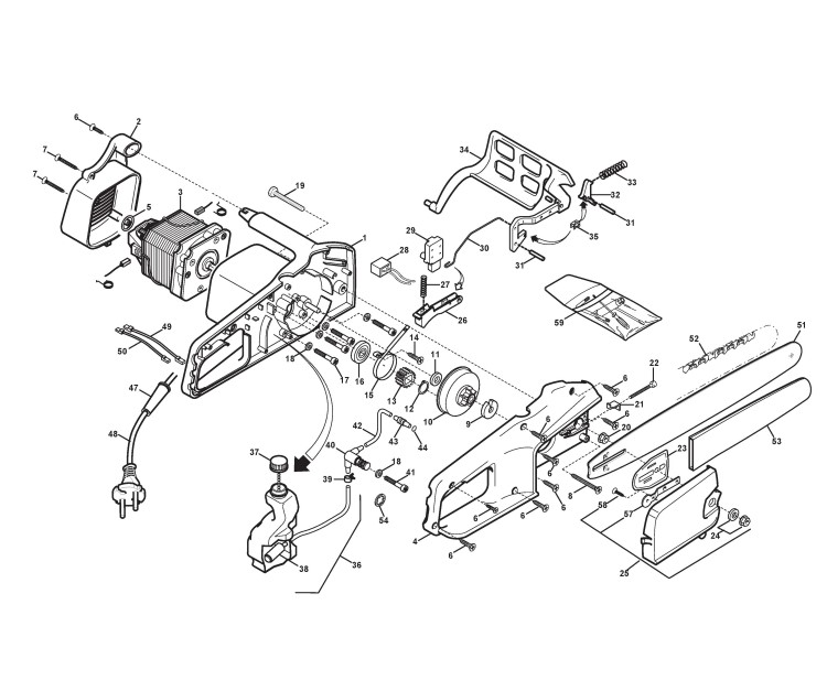 Hier finden Sie alle Ersatzteile von Castelgarden Elektro Kettensäge GD 180 (291716001/BRA) ab 2004 aus der Zeichnung Elektrokettensäge:
