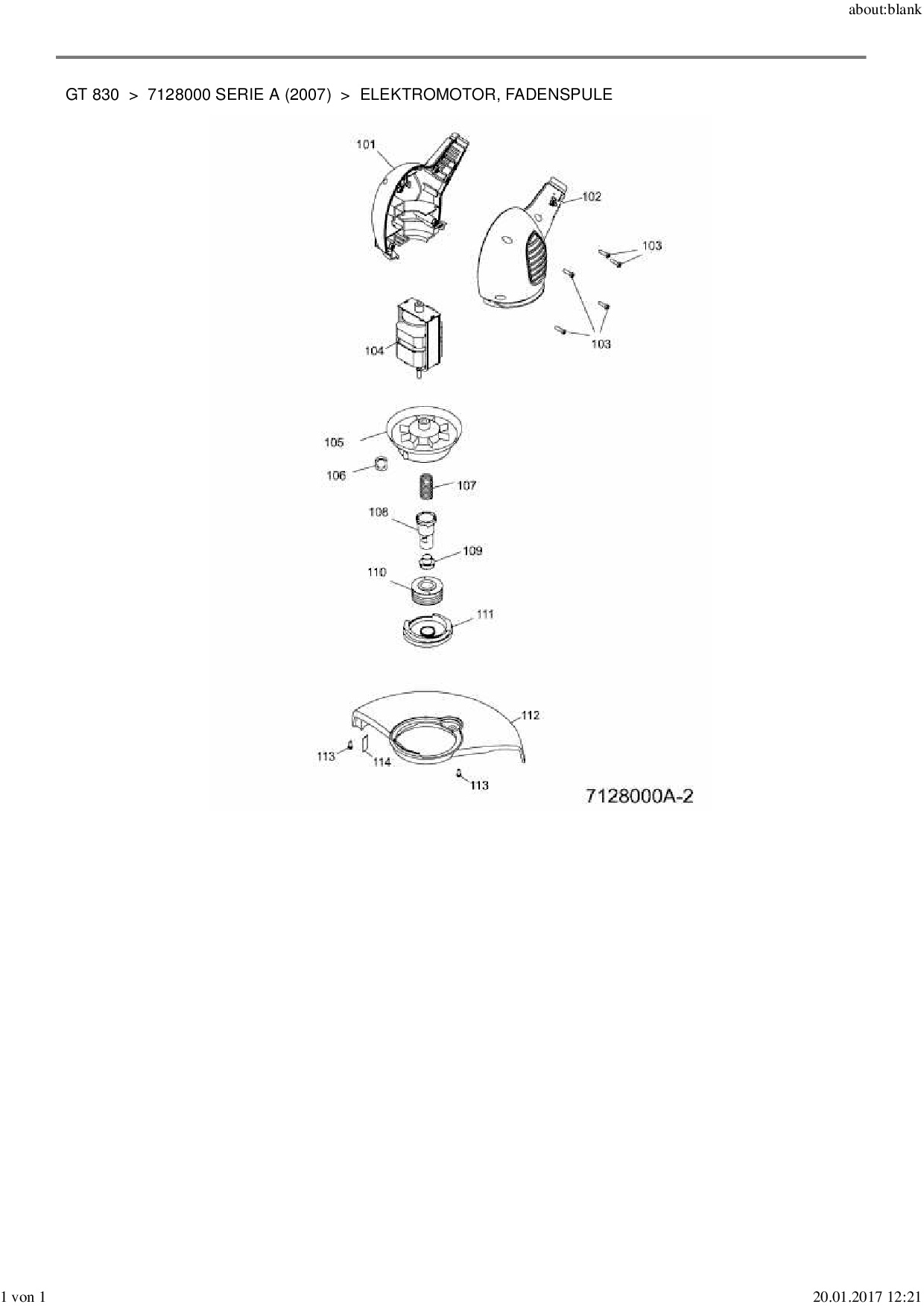 Ersatzteile für Elektrotrimmer Wolf-Garten GT 830 aus der Zeichnung Elektromotor, Fadenspule: