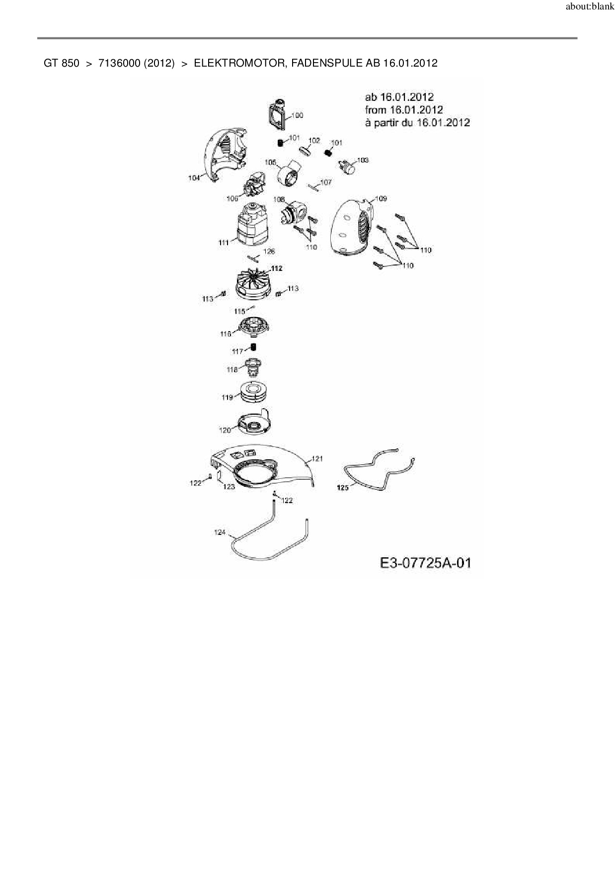 Ersatzteile für Elektrotrimmer Wolf-Garten GT 850 aus der Zeichnung Elektromotor, Fadenspule ab 16.01.2012: