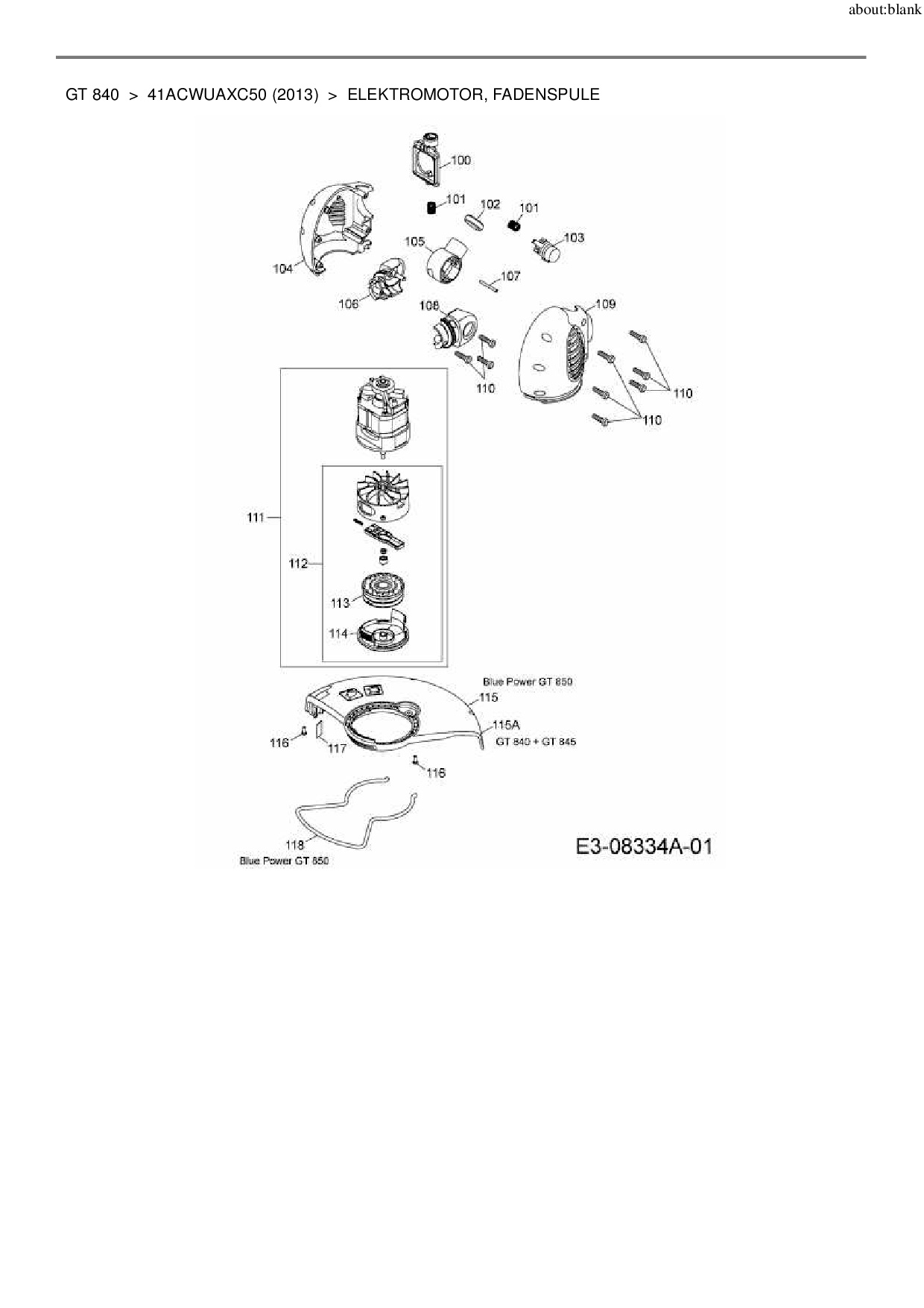 Ersatzteile für Elektrotrimmer Wolf-Garten GT 840 aus der Zeichnung Elektromotor, Fadenspule: