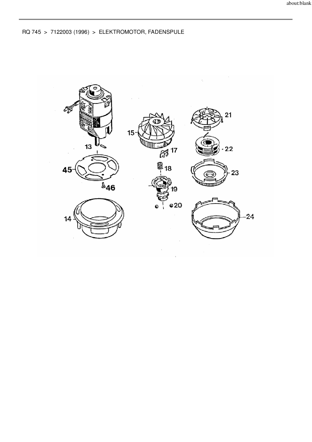 Ersatzteile für Elektrotrimmer Wolf-Garten RQ 745 aus der Zeichnung Elektromotor, Fadenspule: