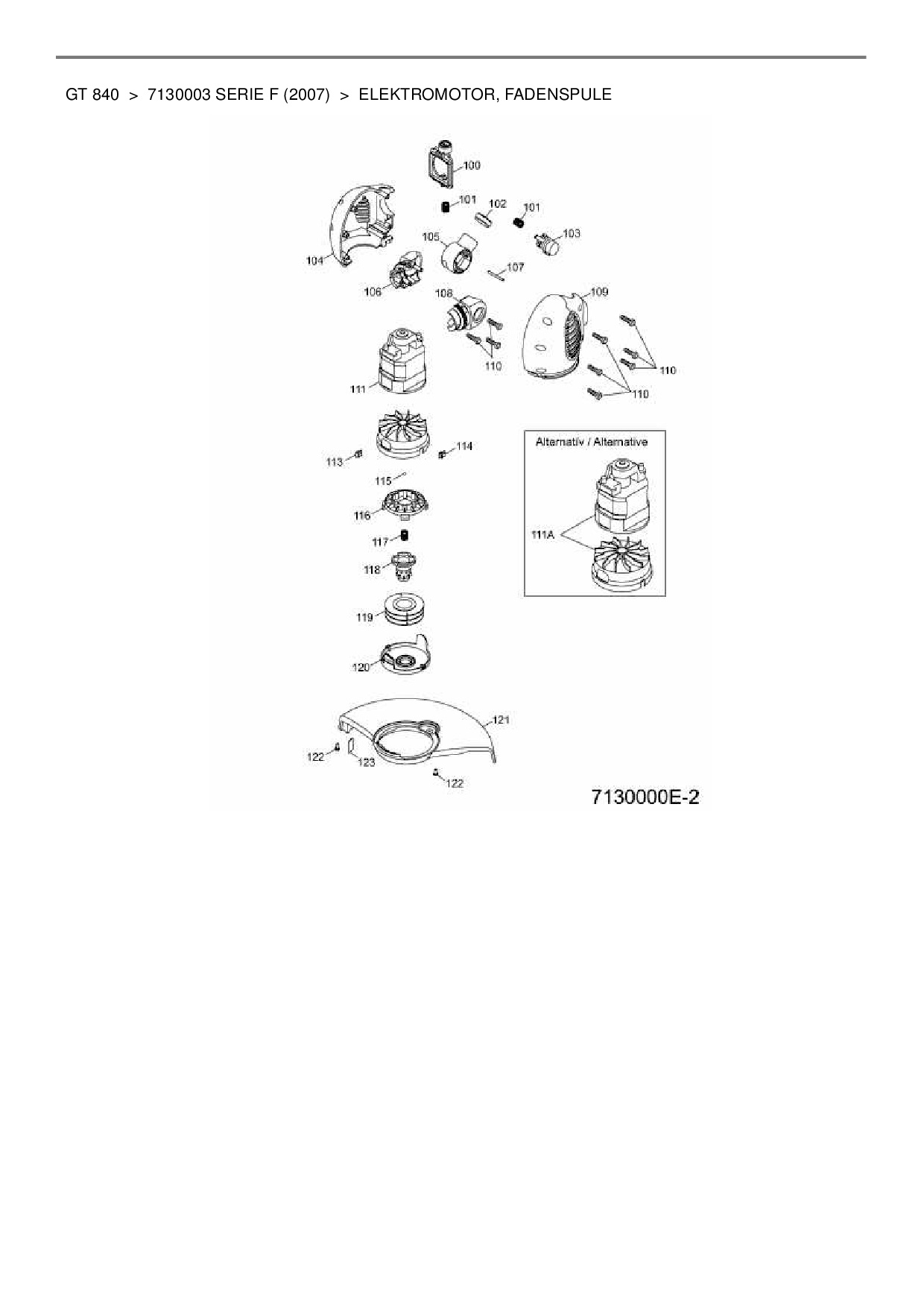 Zeichnung für Wolf-Garten Elektrotrimmer GT 840 mit der Geräte-Artikelnr. 7130003 Serie F ab Baujahr 2007: