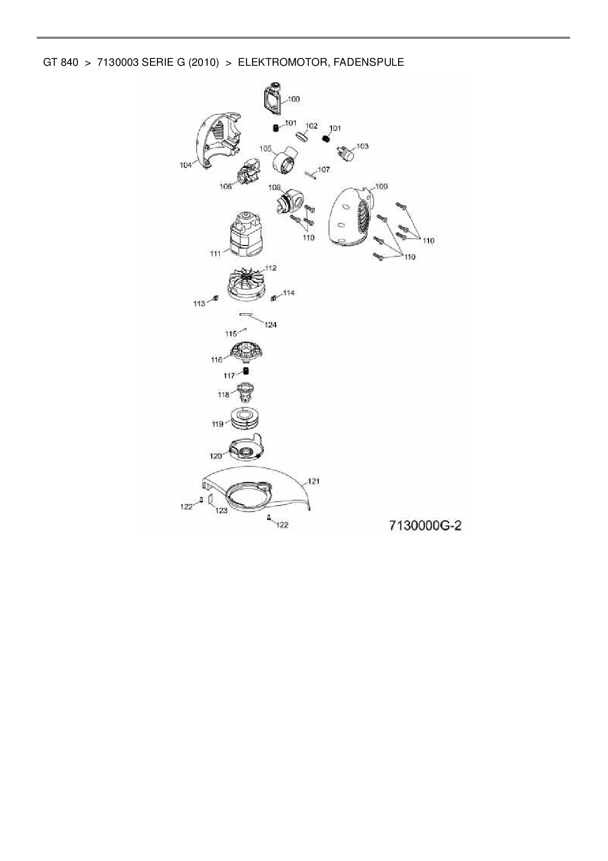 Ersatzteile für Elektrotrimmer Wolf-Garten GT 840 aus der Zeichnung Elektromotor, Fadenspule: