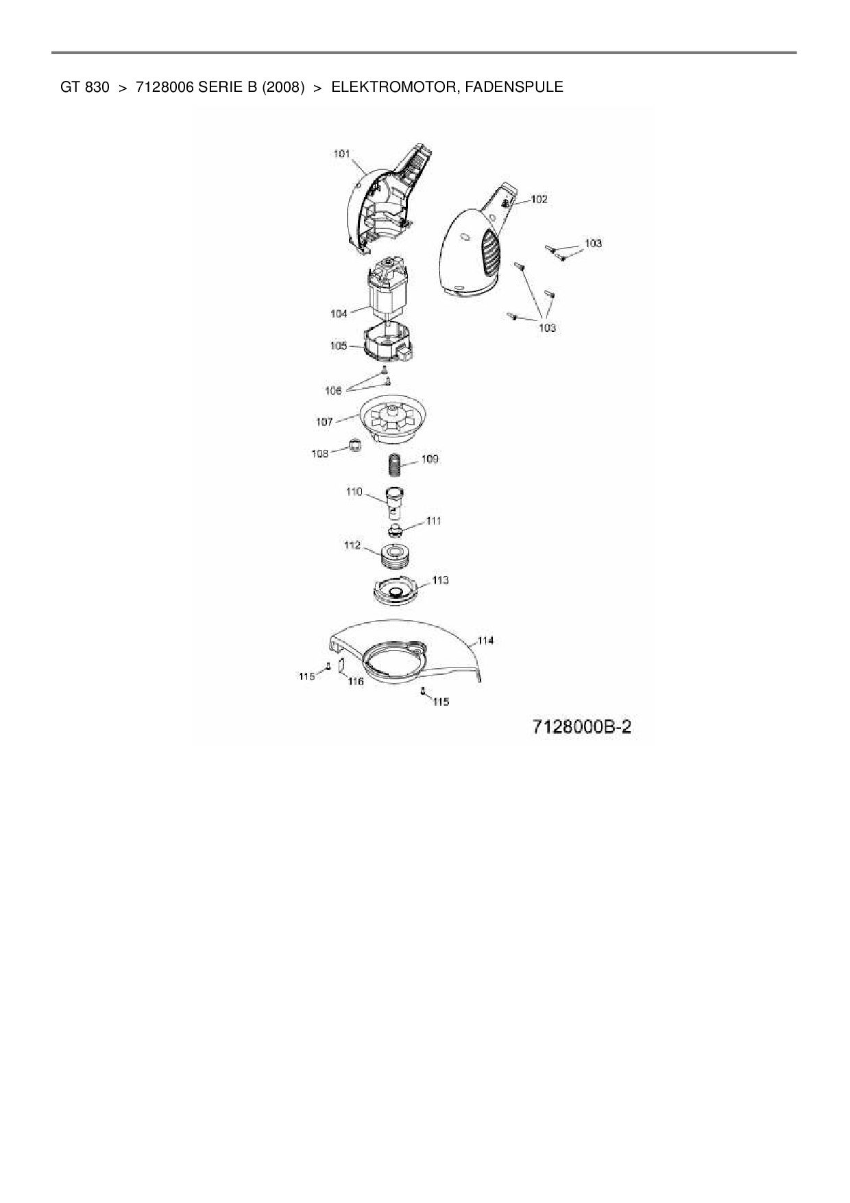 Ersatzteile für Elektrotrimmer Wolf-Garten GT 830 aus der Zeichnung Elektromotor, Fadenspule:
