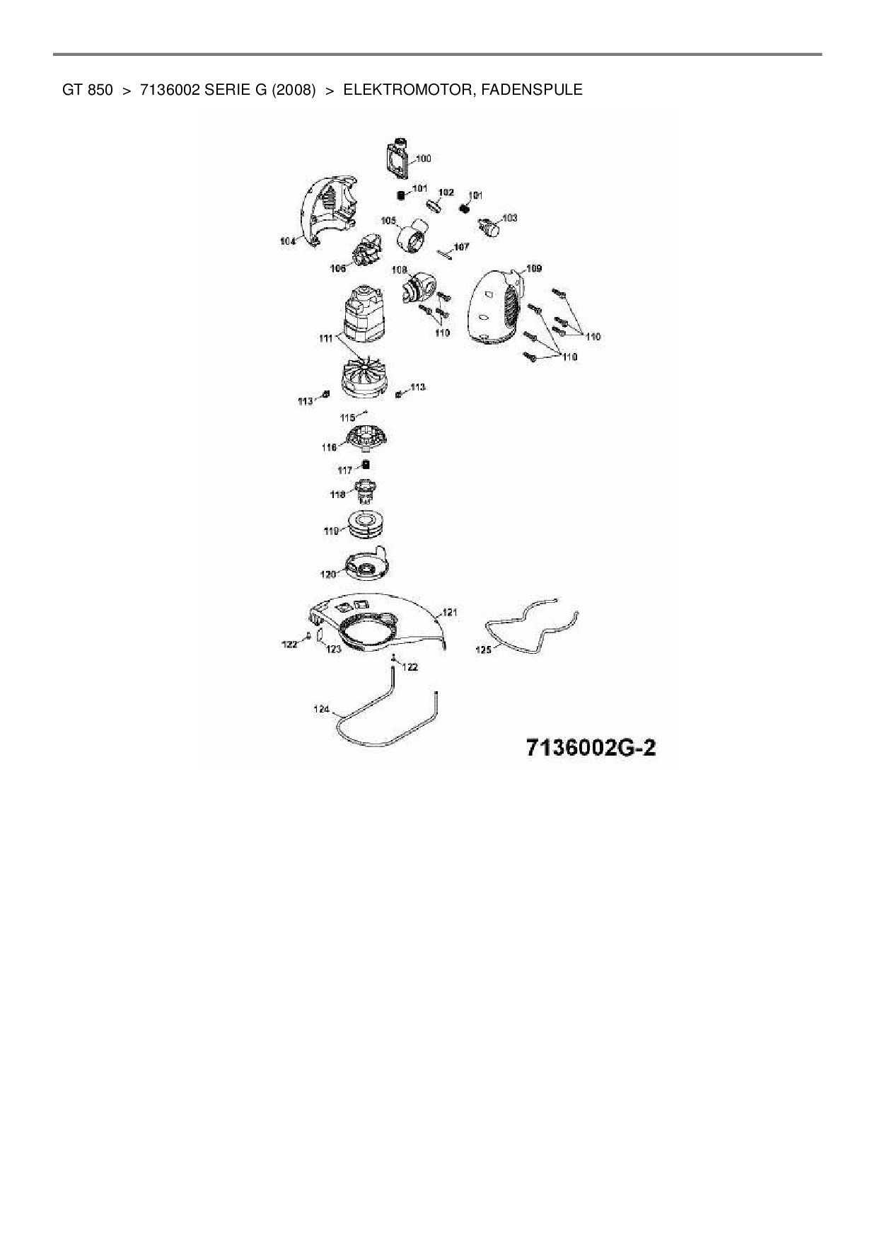 Download Ersatzteil-Zeichnung Wolf-Garten GT 850 Zeichnung Elektromotor, Fadenspule (PDF-Format)