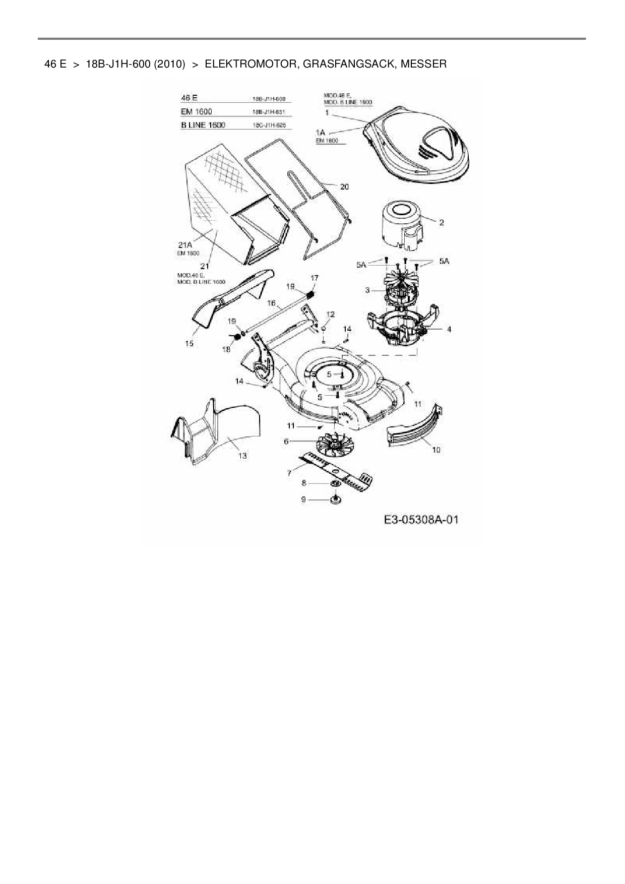 Zeichnung für MTD Elektromäher 46 E mit der Geräte-Artikelnr. 18B-J1H-600 ab Baujahr 2010: