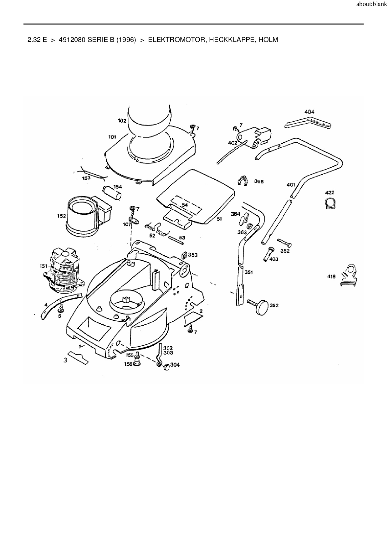 Ersatzteile für Elektromäher Wolf-Garten 2.32 E aus der Zeichnung Elektromotor, Heckklappe, Holm: