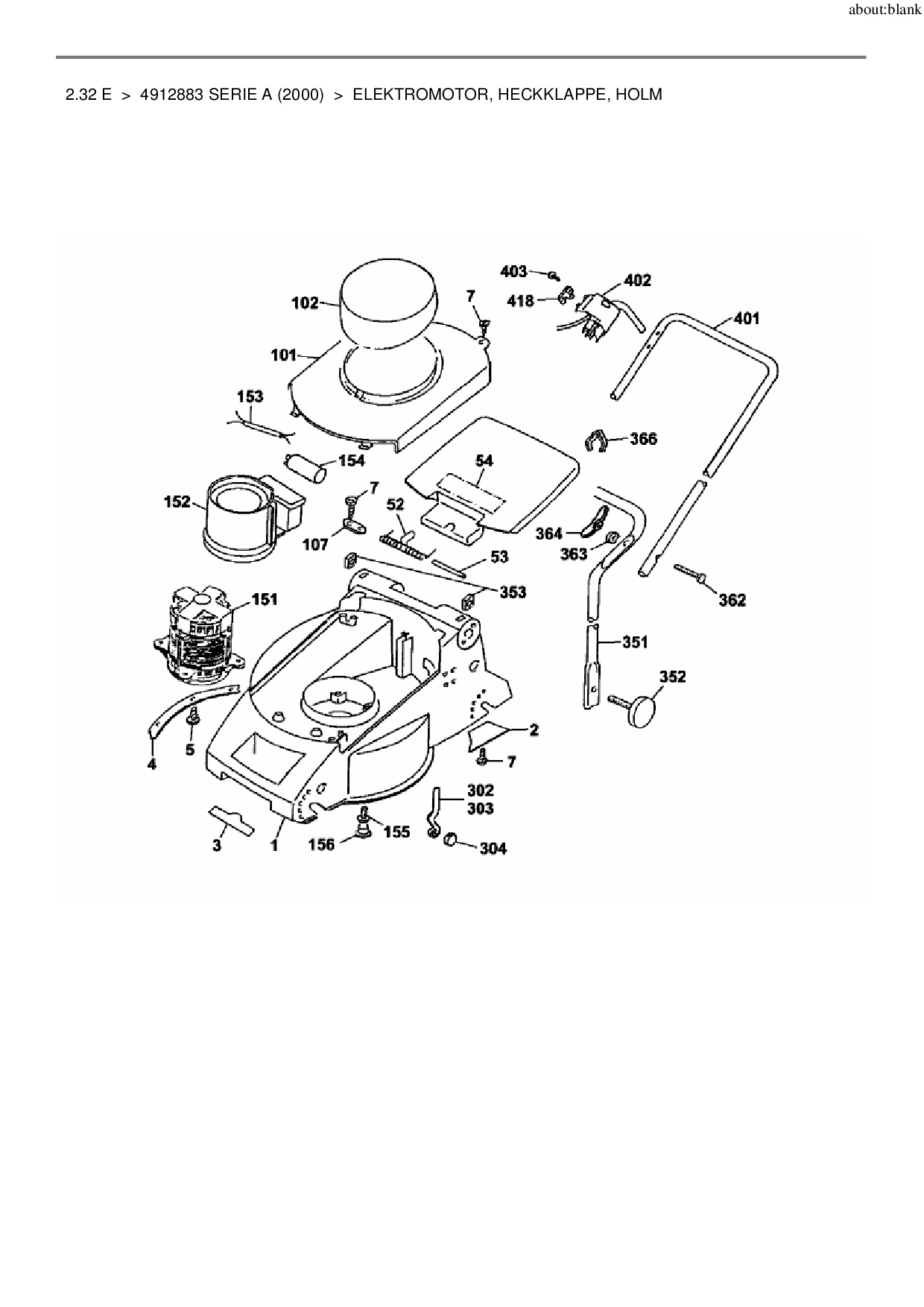 Ersatzteile für Elektromäher Wolf-Garten 2.32 E aus der Zeichnung Elektromotor, Heckklappe, Holm: