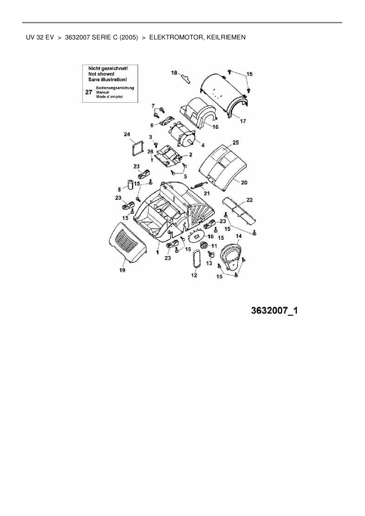 Download Ersatzteil-Zeichnung Wolf-Garten UV 32 EV Zeichnung Elektromotor, Keilriemen (PDF-Format)