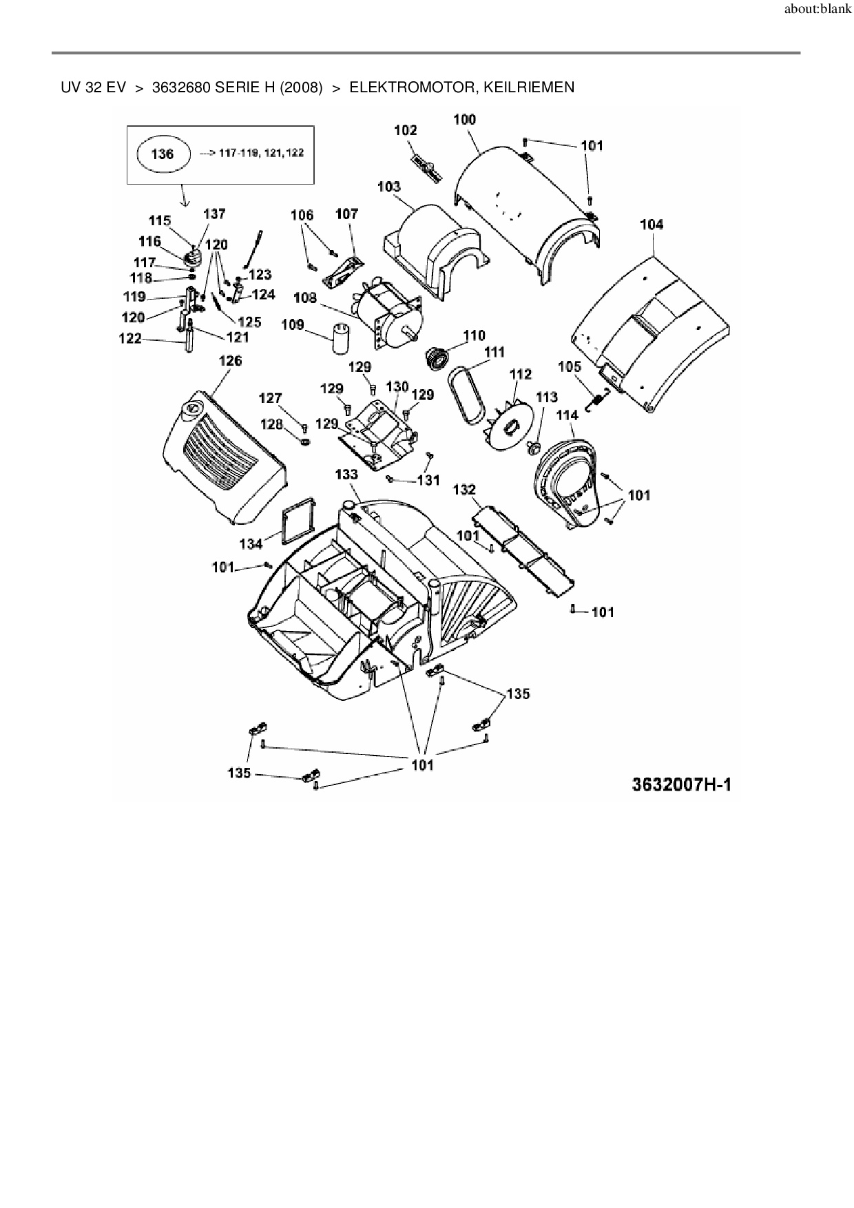Download Ersatzteil-Zeichnung Wolf-Garten UV 32 EV Zeichnung Elektromotor, Keilriemen (PDF-Format)