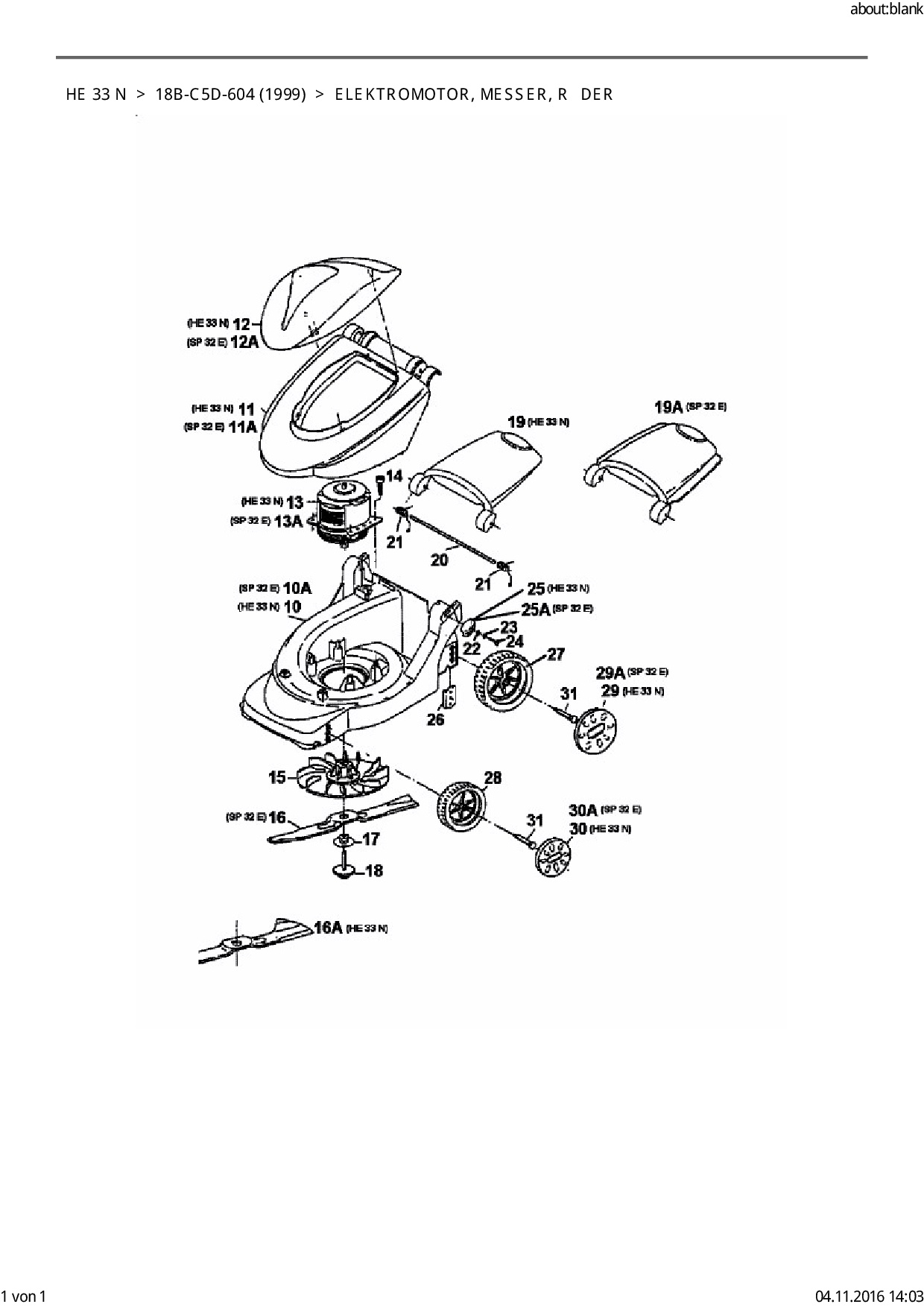 Ersatzteile für Elektromäher Gutbrod HE 33 N aus der Zeichnung Elektromotor, Messer, Räder: