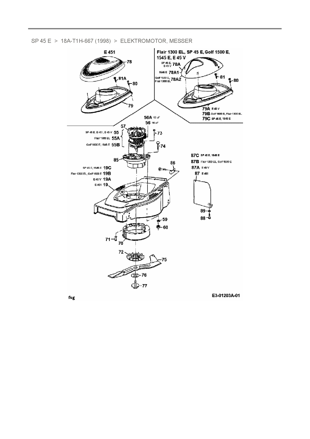 Ersatzteile für Elektromäher Stinnes Pro SP 45 E aus der Zeichnung Elektromotor, Messer: