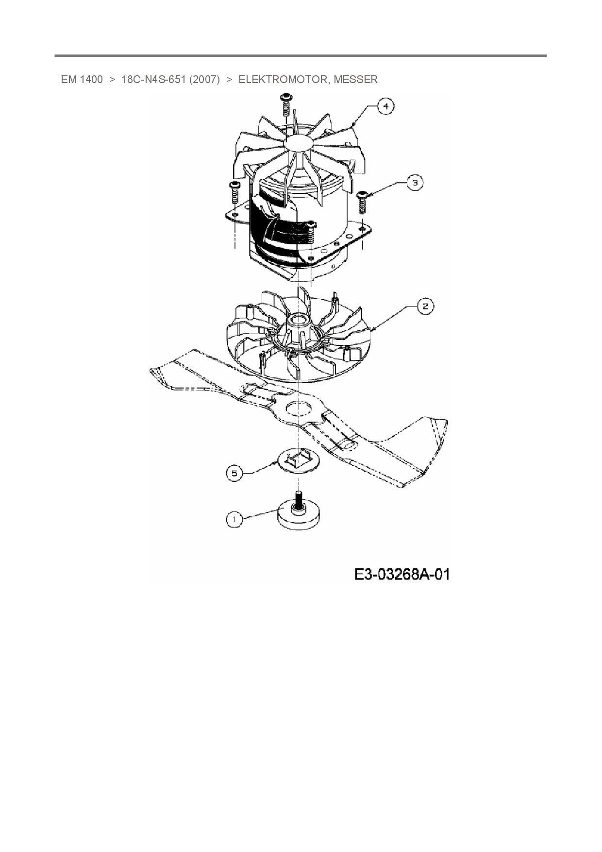 Ersatzteile für Elektromäher Terradena EM 1400 aus der Zeichnung Elektromotor, Messer: