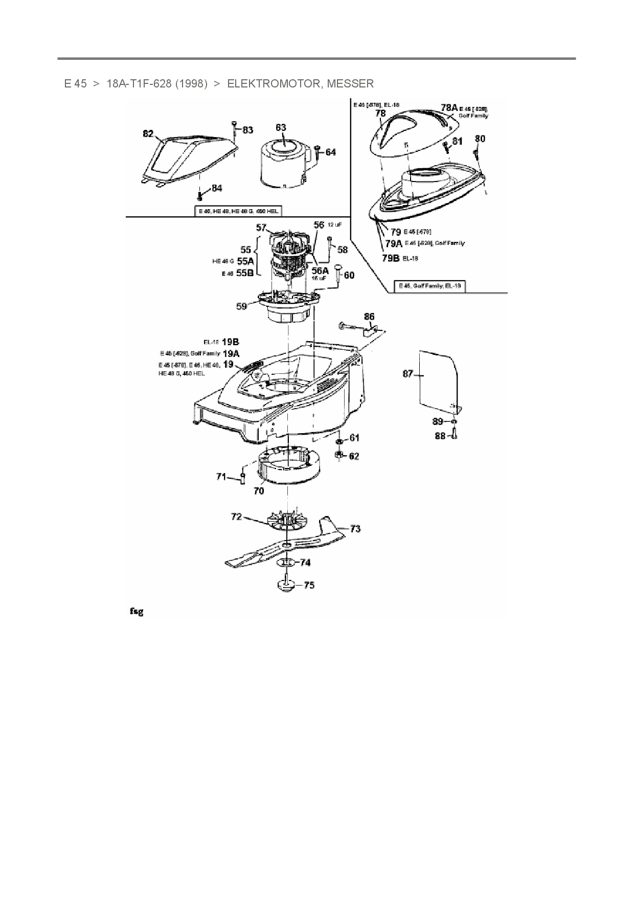 Ersatzteile für Elektromäher Raiffeisen E 45 aus der Zeichnung Elektromotor, Messer: