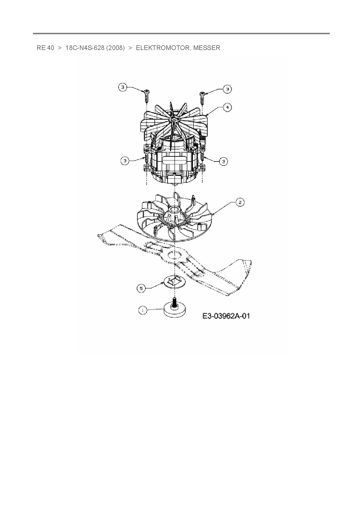 Ersatzteile für Elektromäher Raiffeisen RE 40 aus der Zeichnung Elektromotor, Messer: