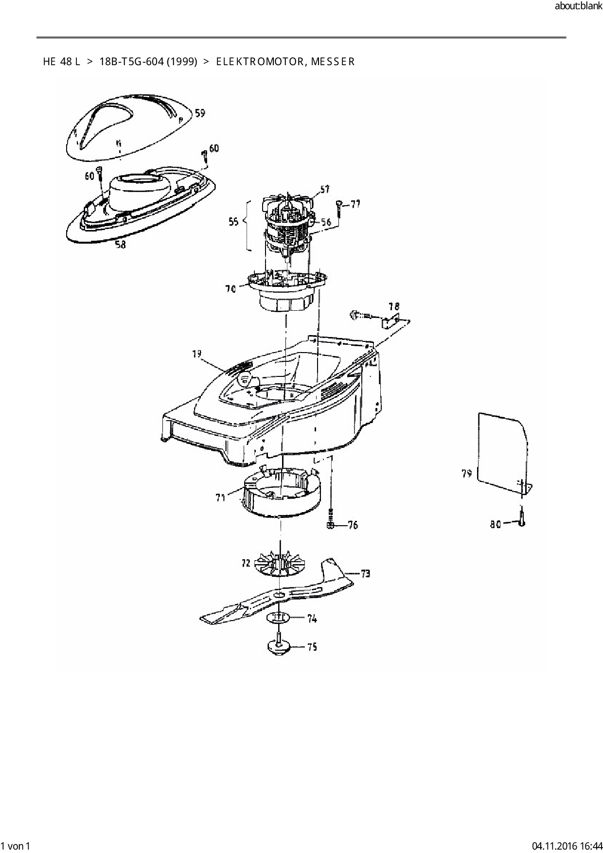 Ersatzteile für Elektromäher Gutbrod HE 48 L aus der Zeichnung Elektromotor, Messer: