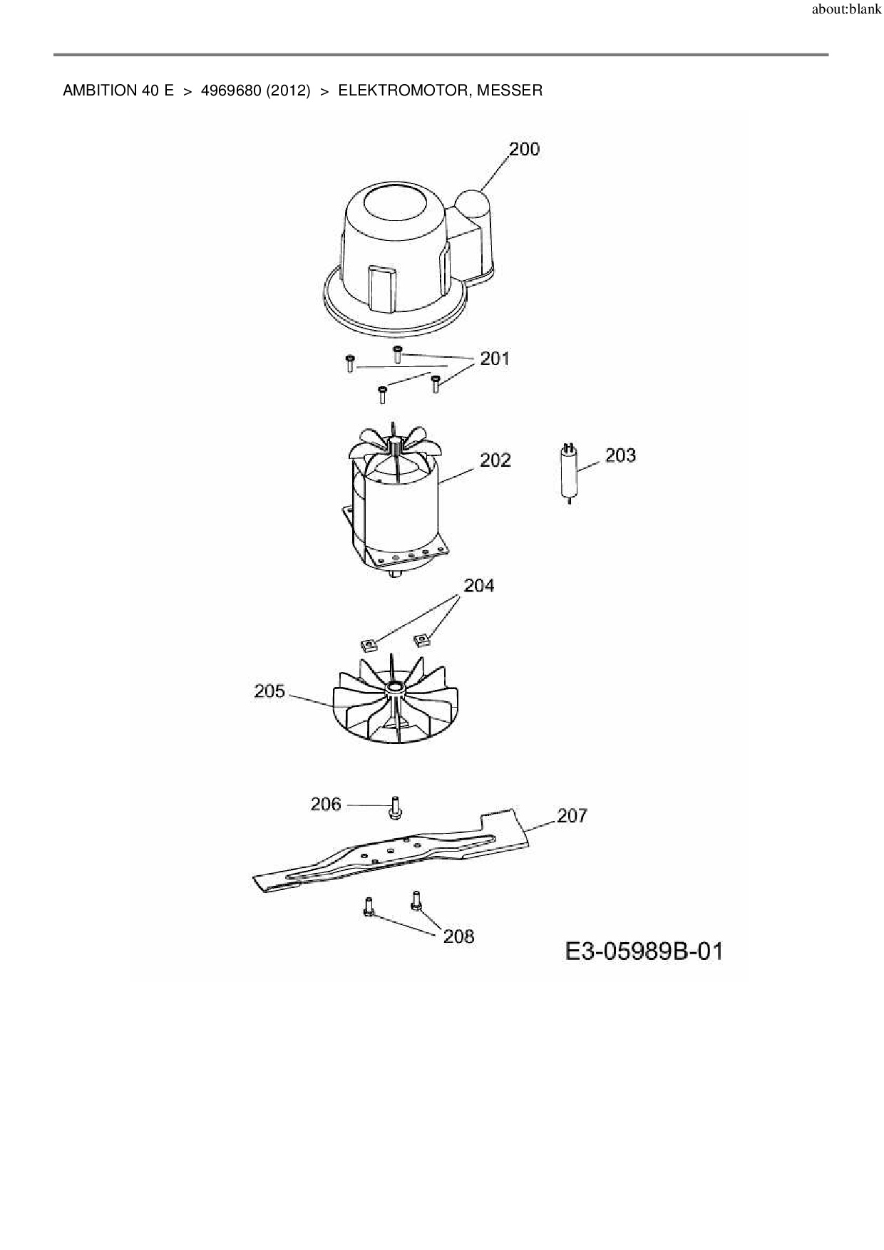 Ersatzteile für Elektromäher Wolf-Garten Ambition 40 E aus der Zeichnung Elektromotor, Messer: