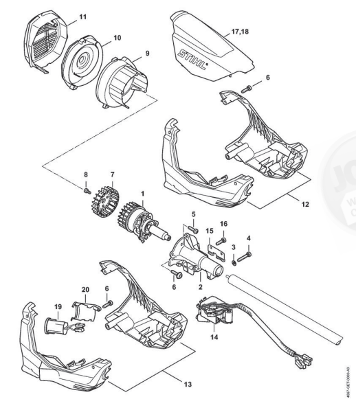 Hier finden Sie alle Ersatzteile von Stihl Motorsensen und Freischneider FSA 130 der Zeichnungsgruppe Elektromotor, Motorgehäuse: