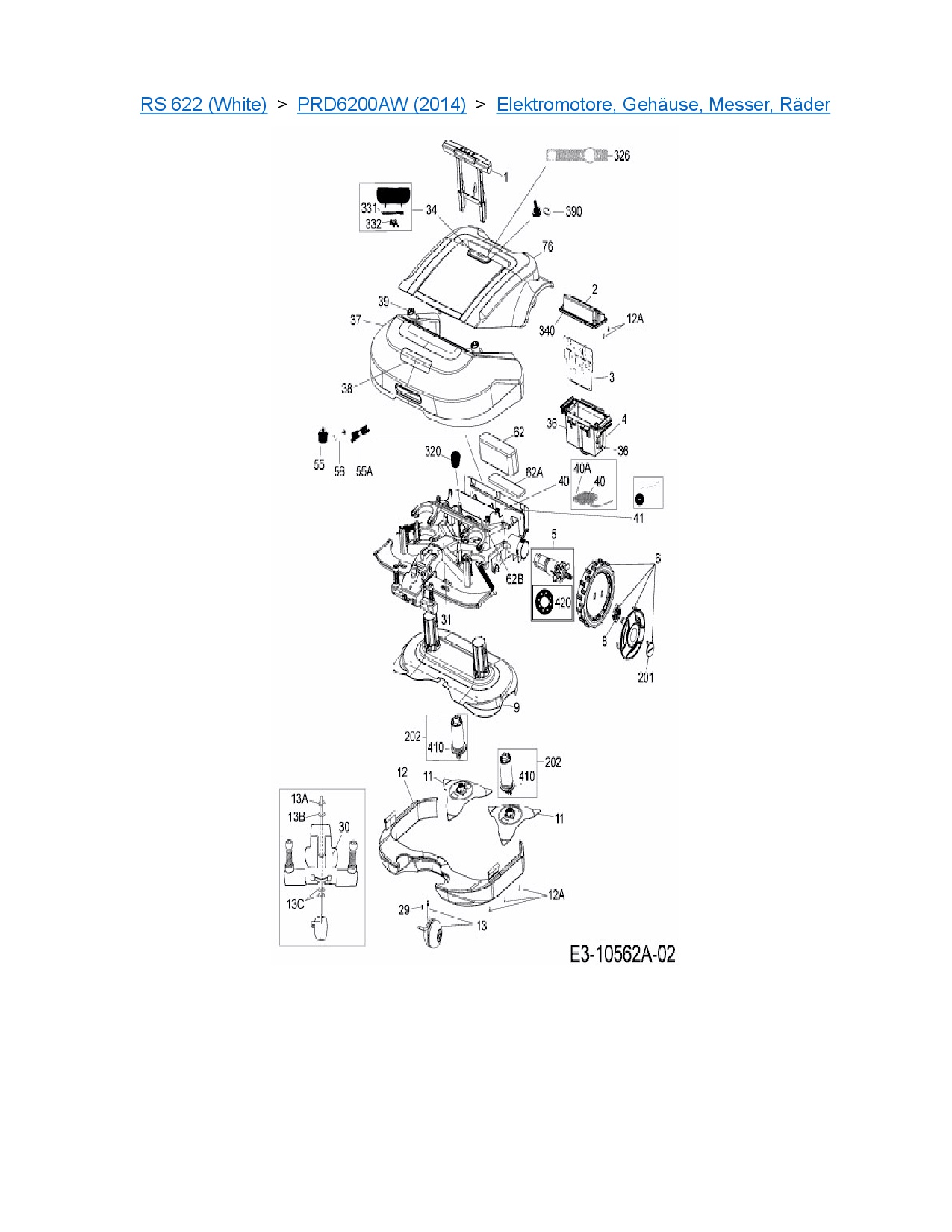 Ersatzteile für Mähroboter Robomow RS 622 (White) aus der Zeichnung Elektromotore, Gehäuse, Messer, Räder: