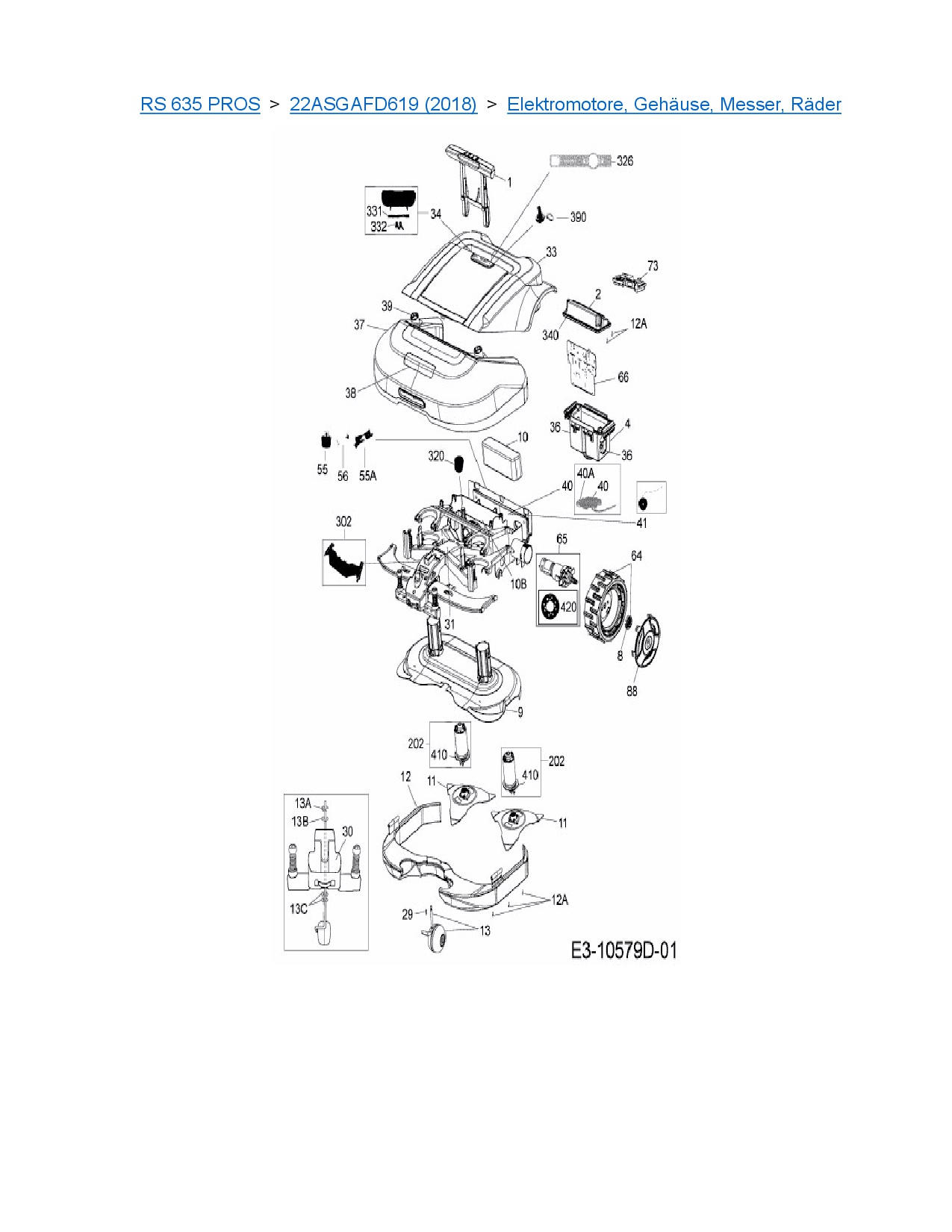 Ersatzteile für Mähroboter Robomow RS 635 PROS aus der Zeichnung Elektromotore, Gehäuse, Messer, Räder: